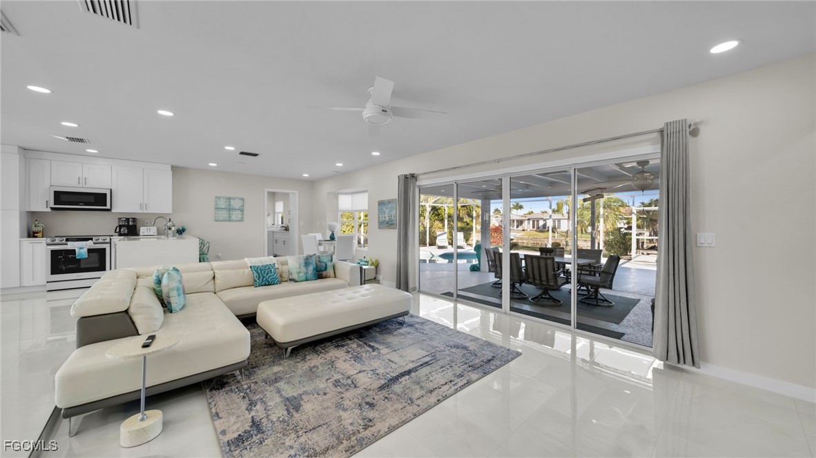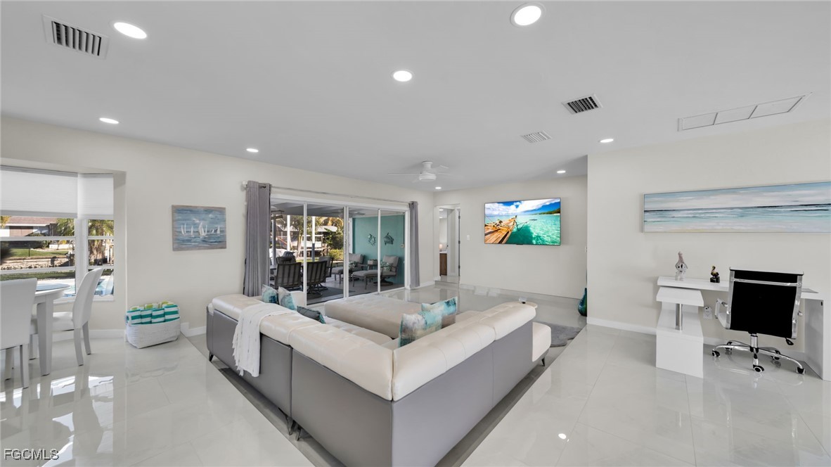 Welcome to this beautifully renovated waterfront residence offering direct Gulf access and modern luxury throughout. This 3-bedroom, 2-bath home features a bright open-concept floor plan with high-end finishes. This home is being offered turnkey, with all furniture included, allowing for a seamless move-in or immediate rental opportunity. The spacious living area flows seamlessly to the outdoor space, where you’ll find a screened-in pool, expansive patio, and a private dock with a boat lift, perfect for enjoying the Southwest Florida boating lifestyle. No bridges to open water, making this an ideal property for boaters. Additional highlights include a contemporary kitchen with premium cabinetry and countertops, stylishly remodeled bathrooms, and a large waterfront backyard designed for entertaining and relaxation. Located in a desirable Cape Coral neighborhood close to shopping, dining, and amenities. This move-in-ready Gulf access home is perfect as a primary residence, vacation home, or investment property