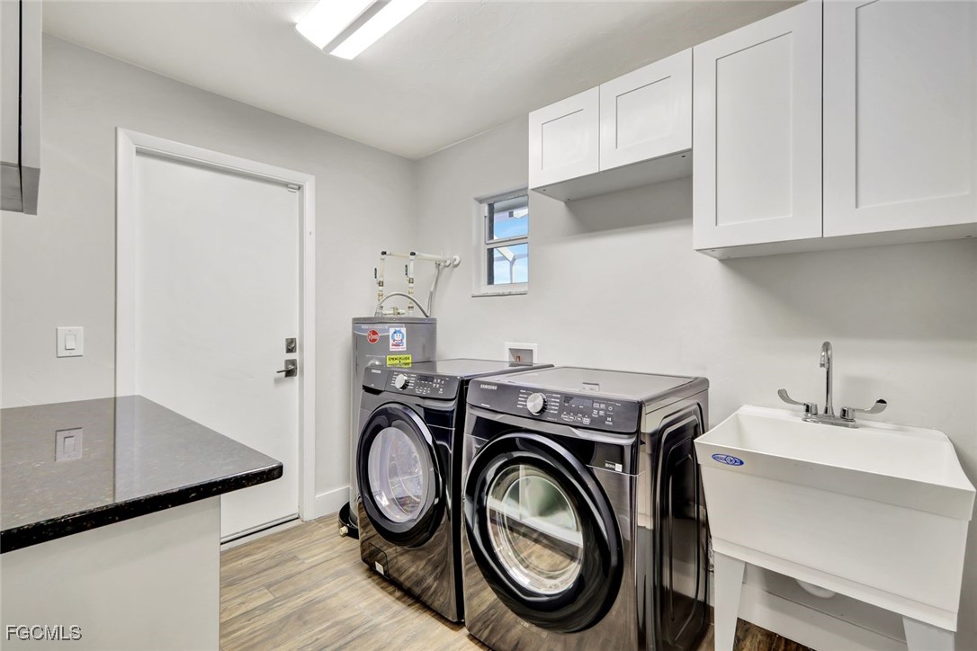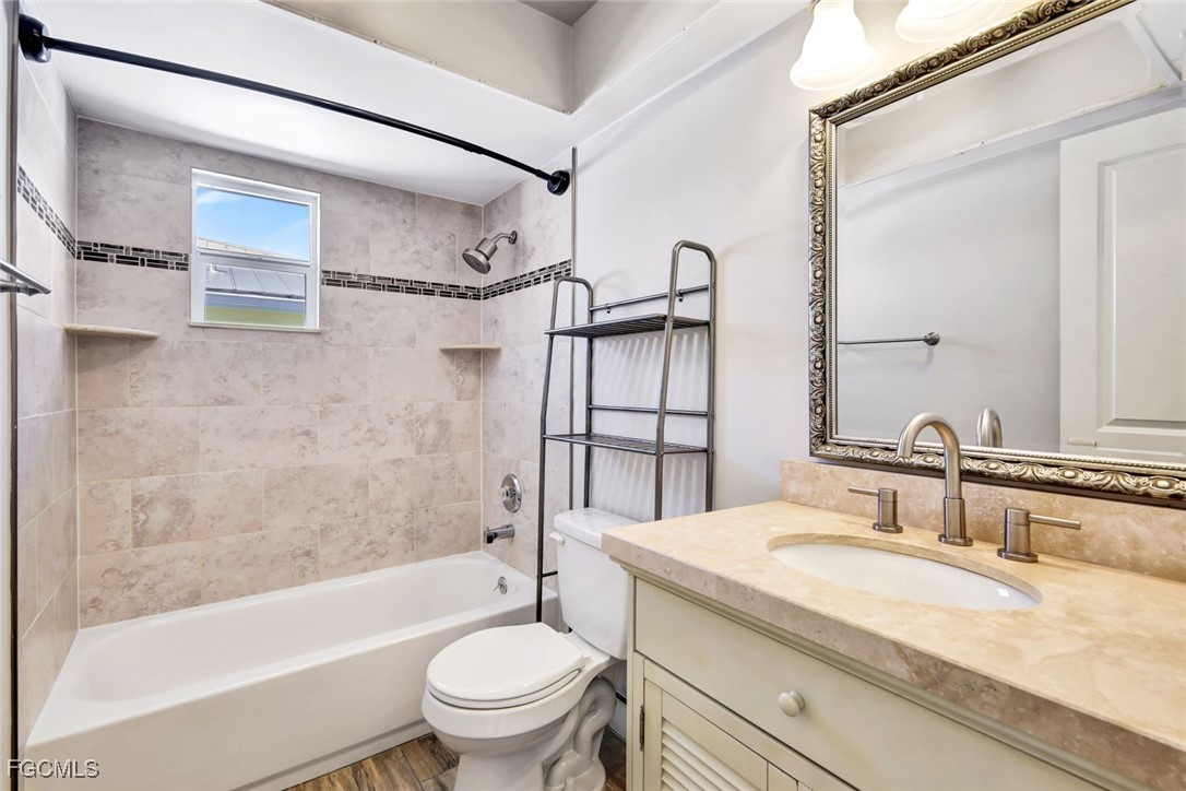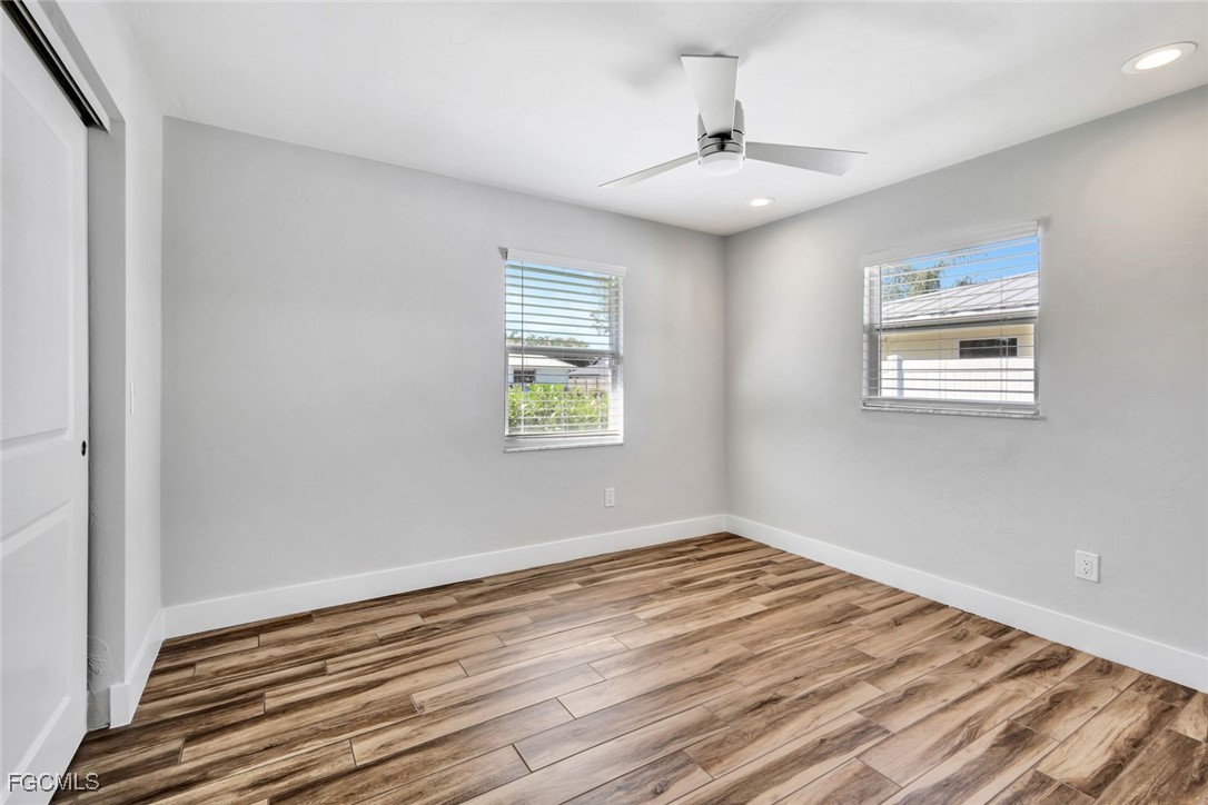 This NO FLOOD ZONE 3-bedroom, 2-bath, 2-car garage home offers 1,682 sq ft of living space plus additional flex space, ideally located just off McGregor Blvd in a prime Fort Myers location. This property has been renovated and well maintained with a NEW ROOF IN 2023, AC SYSTEMS replaced in 2022, and a NEW WATER HEATER in 2025; giving you peace of mind for years to come and saving you money on insurance and ownership costs. Wood plank tile flooring runs throughout the home complemented by fresh interior and exterior paint. The kitchen and bathrooms feature granite countertops and solid wood cabinetry. The generous laundry room includes a sink, cabinets, and ample storage. Outdoor living is a highlight with over 600 sq ft of screened-in lanai featuring an outdoor kitchen, perfect for entertaining and relaxing. The lanai overlooks a large backyard with privacy fencing. Additional features include a Ring security system, keyless entry, and a spacious flex room suitable for a home office or additional living area. Conveniently located minutes from the Cape Coral Bridge, shopping, dining, and entertainment, and a short drive to Fort Myers, Sanibel, and Captiva beaches. Flood Zone X500, no flood insurance required.