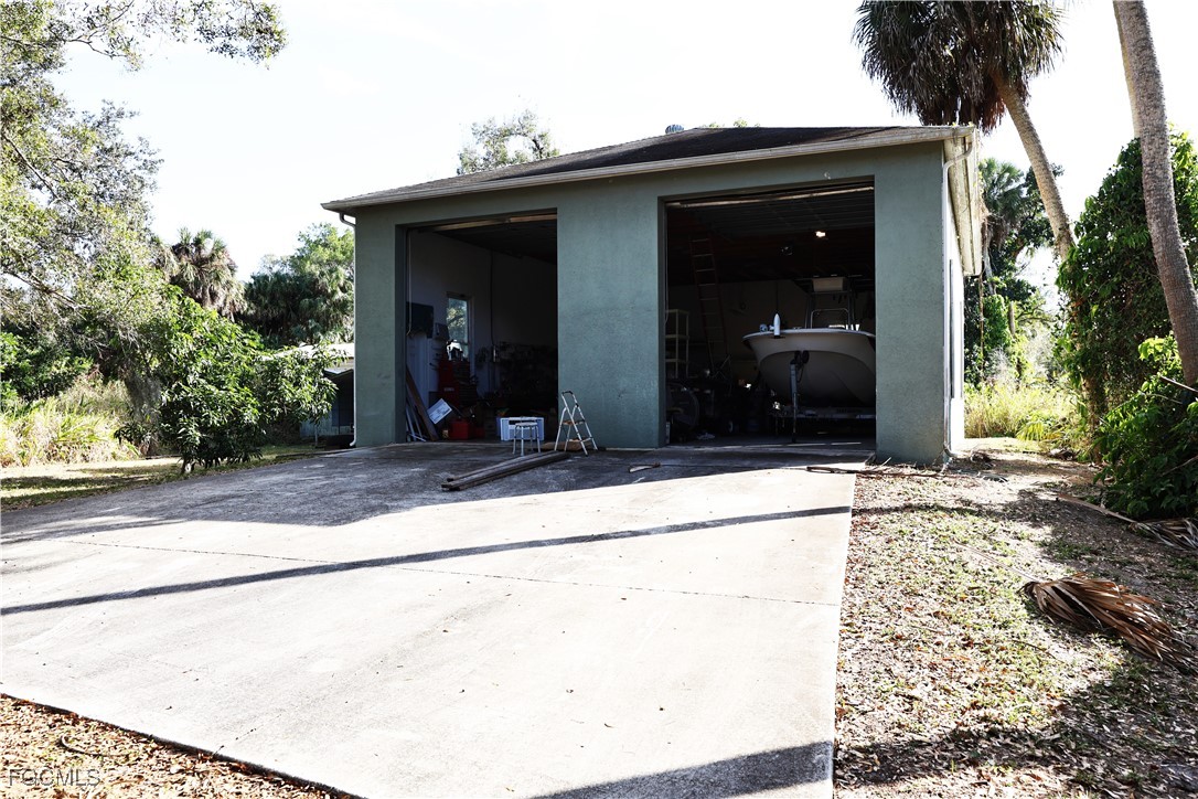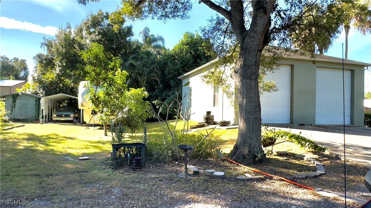 Double RV GARAGE, detached from 3 bedroom home on just under an acre of land in NFM! Have a lot of toys to store? This huge concrete block garage can hold an RV and a boat, side by sides lawn equipment you name it! Or how about not paying for a home and a shop separately ? Walk out back and make this garage your shop. The home itself is cozy and has had some nice updates LVP flooring and a NEW roof! Nice size bedrooms, large kitchen with an island, a little office area off of the kitchen, laundry room inside and a half bath. You could move in and still have enough land to build your dream home, in-law suite or put in a pool. The possibilities for this unique property are endless! Call for your private tour today.