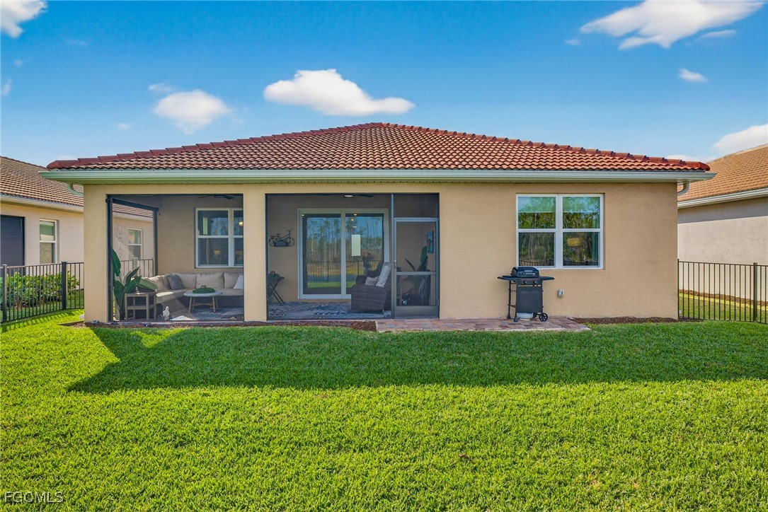 Upon entry, you are greeted by an open-concept floor plan filled with abundant natural light. The living area seamlessly connects to the outdoors through impact glass windows and sliders, showcasing views of the oversized, fenced backyard, lake, and natural preserve. Although nearly new, the owners have completed numerous upgrades, including an extended patio, new palm trees, and a fully fenced yard—perfect for outdoor enjoyment.