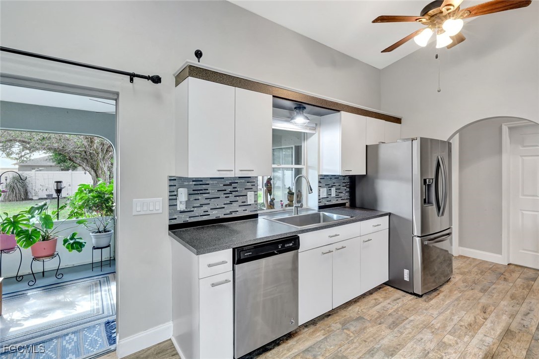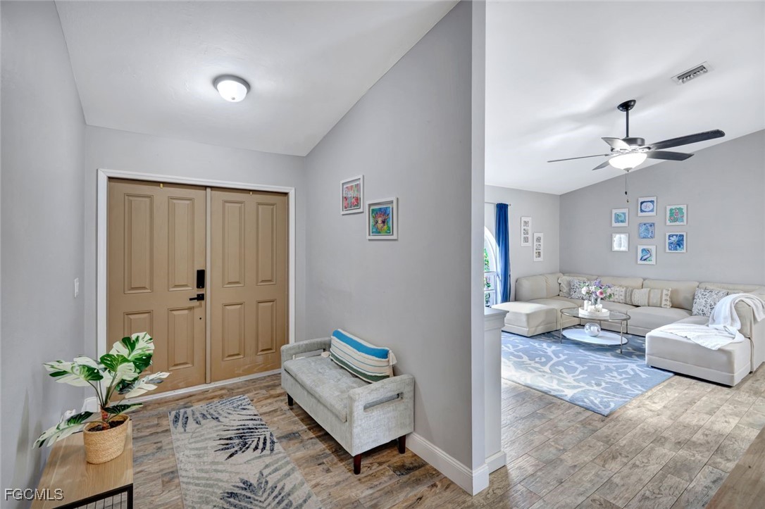Welcome to this charming 3-bedroom, 2-bath, 2-car garage home perfectly positioned in the heart of Cape Coral. This fully fenced property offers peace of mind and plenty of space to create your own private oasis. Inside, you’ll find a bright, open layout with updated finishes and a welcoming flow—ideal for everyday living or entertaining. Step outside to the large screened lanai, perfect for al fresco dining, morning coffee, or relaxing evenings outdoors. The spacious backyard offers endless possibilities, with ample room to add your dream pool, playground, or garden retreat. Whether you’re a first-time homebuyer, growing family, or savvy investor, this home checks all the boxes. Conveniently and centrally located just off Santa Barbara Boulevard and the Midpoint Bridge, you’re minutes from schools, grocery stores, dining, shopping, and easy access to Fort Myers. Affordable, move-in ready, and full of potential—this is Florida living at its best. Don’t miss your opportunity to make this home yours! Schedule your private showing.