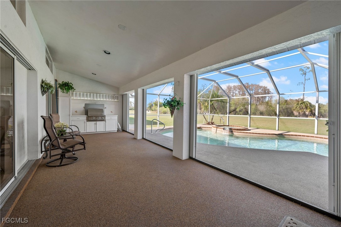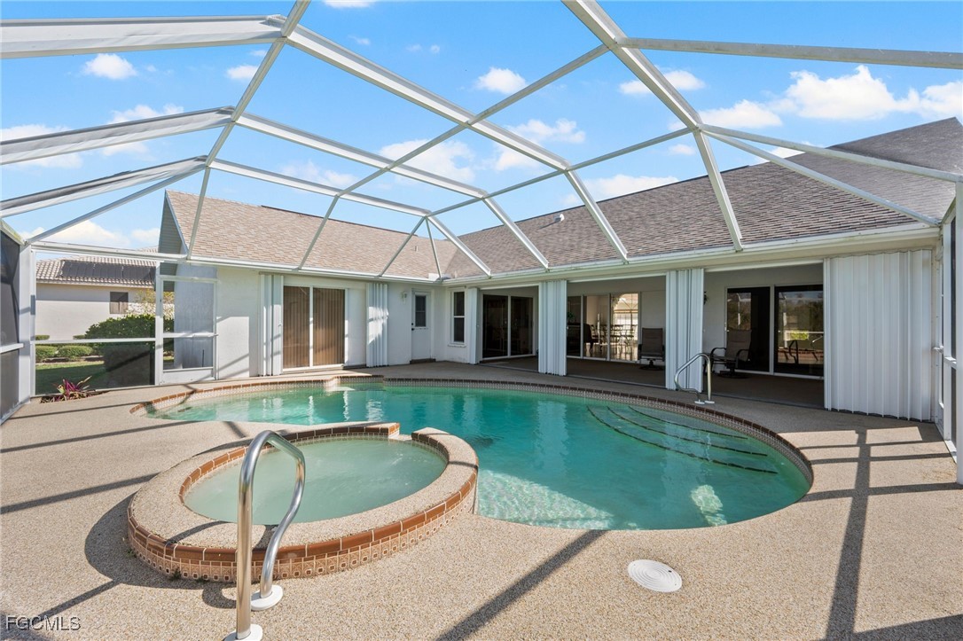 BEST Priced home in Eagle Ridge!! Spacious 4/3 Pool & Spa home on the Golf Course with 2,648 sf under air !! This immaculately kept home features an Open Plan with Soaring Ceilings, Gleaming tile floors, Granite kitchen with black appliances, breakfast area and bar. This home is made for Entertaining with 2 Sets of Pocketing Sliders to the large covered lanai and pool deck complete with outdoor kitchen! Beautiful Golf and Nature Views - Overlooking the 14th hole of Eagle Ridge Golf Course - one of SW Florida's premier Pay for Play or low fee membership golf courses. Great floor plan for family or guests with a 3 way split plan providing private guest bedroom/bath access and one of the baths is also a pool bath with access to the pool deck. 4th bedroom makes a great home office with sliders out to the pool area! FULL hurricane protection including electric shutters on front entryway & dining room and accordians on windows and sliders. New Wtr Htr (2025), Trane A/C (2018), New Irrigation Well is being installed. Good size laundry room with cabinetry and sink, lots of closet space thru out, pull down attic stairs for more storage options. Hurry! This home is Priced to Sell and is a GREAT buy for this area, requiring NO Flood Insurance, has LOW HOA fees - just $755/Yr, No CDD fees and Low County Only property taxes! Minutes to Shopping, Dining, Gulfcoast Medical, Twins and Red Sox Spring Training, 6 Mile Slough Nature Center, Minutes to Golf, SWFL Int'l airport, area beaches and more!