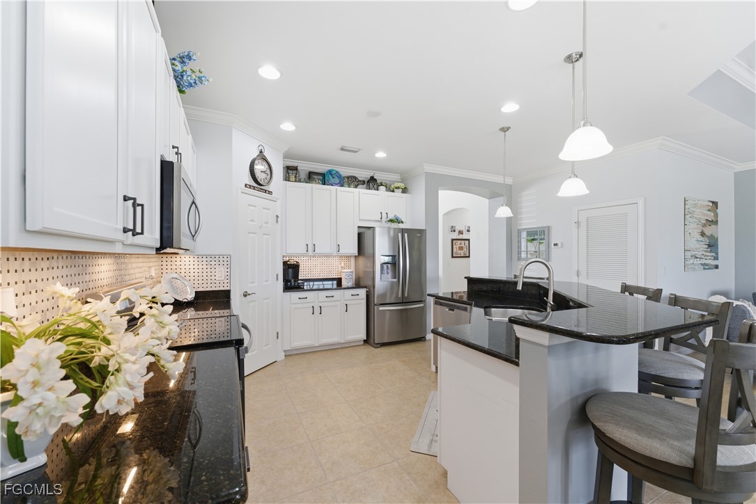 Prime views from your private POOL/SPA and oversized covered outdoor entertaining area await in this impeccably maintained 3-BED, 2-BATH home with a flex room or formal dining space, ideally located in the sought-after gated community of Magnolia Landing. TRAY Ceilings, CROWN MOLDING, and PLANTATION SHUTTERS add to the tasteful upgrades throughout the home, creating a clean, polished look that feels welcoming from the moment you step inside. Designed for easy Florida living, the spacious Open-Concept layout features a separate great room that opens to the kitchen and dining areas, with stunning views through triple sliders leading to the outdoor living space. The kitchen offers a generously sized island, 42” cabinetry, a pantry, and plenty of workspace for gathering and entertaining. Step outside to enjoy the Florida lifestyle year-round on the 24'8" x 12' COVERED & SCREENED LANAI, overlooking the sparkling pool/spa—an ideal setting for relaxing or hosting friends and family. Enjoy the ultimate Florida lifestyle in your private pool with a SUN SHELF and bubbler, all framed by gorgeous views—ideal for morning coffee and sunset cocktails. The primary suite offers a peaceful retreat with a double vanity, large walk-in shower, and ample space to unwind. Two guest bedrooms are thoughtfully positioned on the opposite side of the home, offering privacy and comfort for family and visitors. The backyard provides privacy and tranquility, ready for your personal finishing touches. Conveniently located near the clubhouse and restaurant, this home sits in a prime area of the community. Magnolia Landing offers resort-style amenities, including pickleball, bocce ball, shuffleboard, a state-of-the-art fitness center, and two pools—one resort-style and one lap pool. The active amenity center hosts a full calendar of community events and activities. Low HOA fees include lawn care, landscaping, irrigation, and bulk cable. Golf is available with optional membership or pay-as-you-play. Just minutes from Cape Coral, Punta Gorda, and Fort Myers, with easy access to shopping, dining, entertainment, and both RSW and Punta Gorda airports—this is a must-see home in a vibrant community. Schedule your showing today!