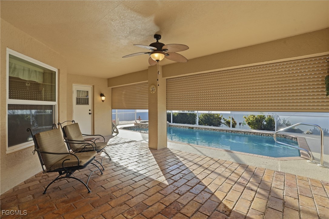 The primary suite includes dual sinks, a jetted tub, and a separate shower. Additional highlights include NEW hurricane-rated doors and windows throughout, French doors, cable and internet prewire, laundry room with tub, and ample storage throughout. The home also offers convenient pool bath access, ideal for indoor-outdoor living.