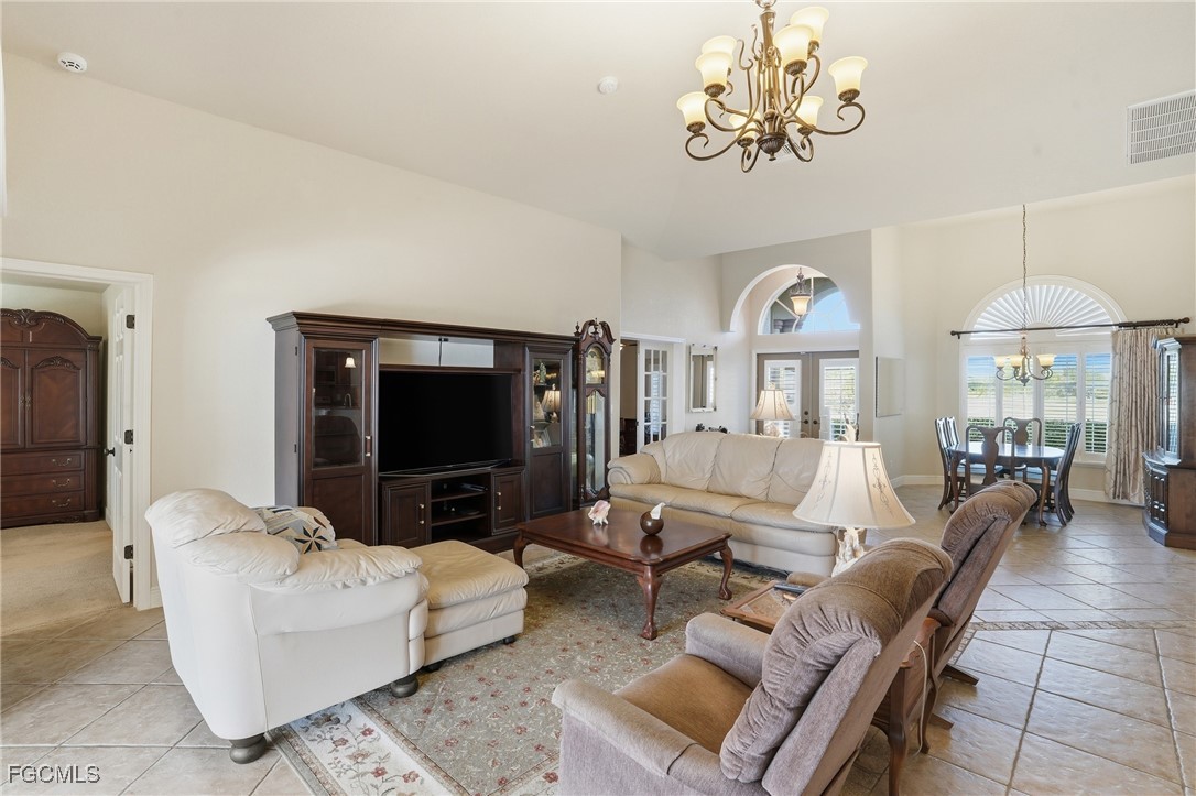 Welcome to this 3-bedroom plus den, 2-bath single-family home located in a desirable Cape Coral neighborhood. Built in 2006, this one-story residence offers 2,078 sq ft of living space with a spacious great room floor plan and volume ceilings that create an open, airy feel. The home features a combination of tile and carpet flooring, an eat-in kitchen with pantry, and a formal dining area—perfect for both everyday living and entertaining.