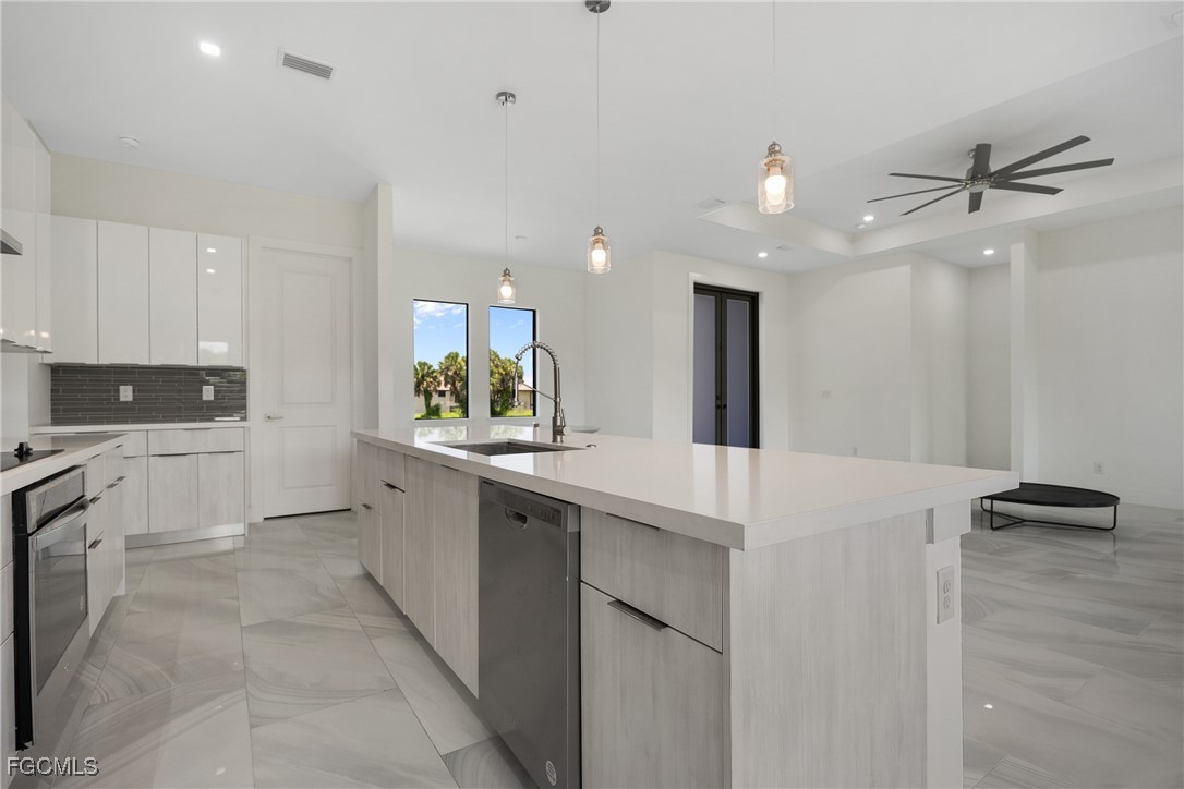 NEW CONSTRUCTION!! BEAUTIFUL 3 BEDROOM, 2.5 BATHS, 2 CAR GARAGE HOME IN BURNT STORE LAKES! Inviting open floor plan features over 2,100 square feet of living area, double door entry, high ceilings, ample natural lighting, and sliders to screen lanai. Step inside to open living and dining area with tile flooring and views of lanai and greenery. Chef’s kitchen features white cabinetry, Italian quartz countertops, stainless steel appliances, walk-in pantry, breakfast bar and large island perfect for entertaining guests. Generous primary bedroom boasts his and her walk-in closets, access to lanai and ensuite bath dual vanities, and large frameless walk-in shower. Split floor plan provides guests with plenty of privacy with 2 additional bedrooms and a full guest bath. Outside entertaining area features covered and screened lanai and yard space for future pool. Additional features include laundry room, irrigation system, paver driveway, and oversized 2 car garage. The location of this property is unbeatable, just 20 minutes from downtown Punta Gorda and 30 minutes from downtown Fort Myers. Additionally, it's close to the relaxed waterfront community of Burnt Store Marina, offering access to resort and golfing facilities, waterfront dining, and entertainment. It is conveniently located to the airport, restaurants, shopping and award-winning fishing and boating. Don't miss out on this opportunity! Schedule your private showing today!