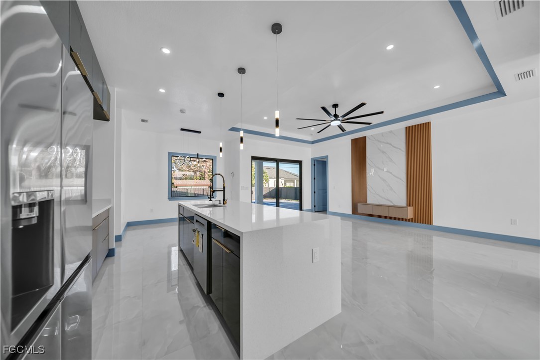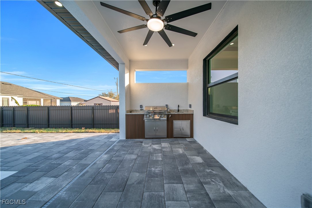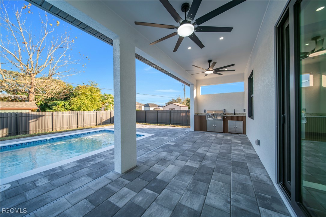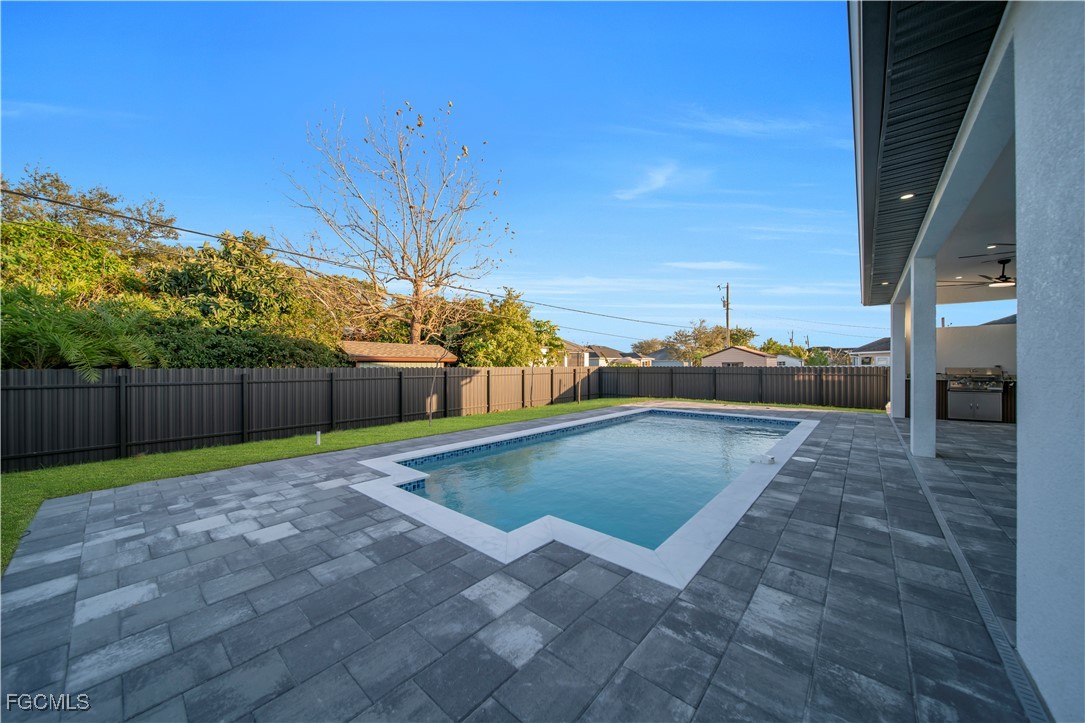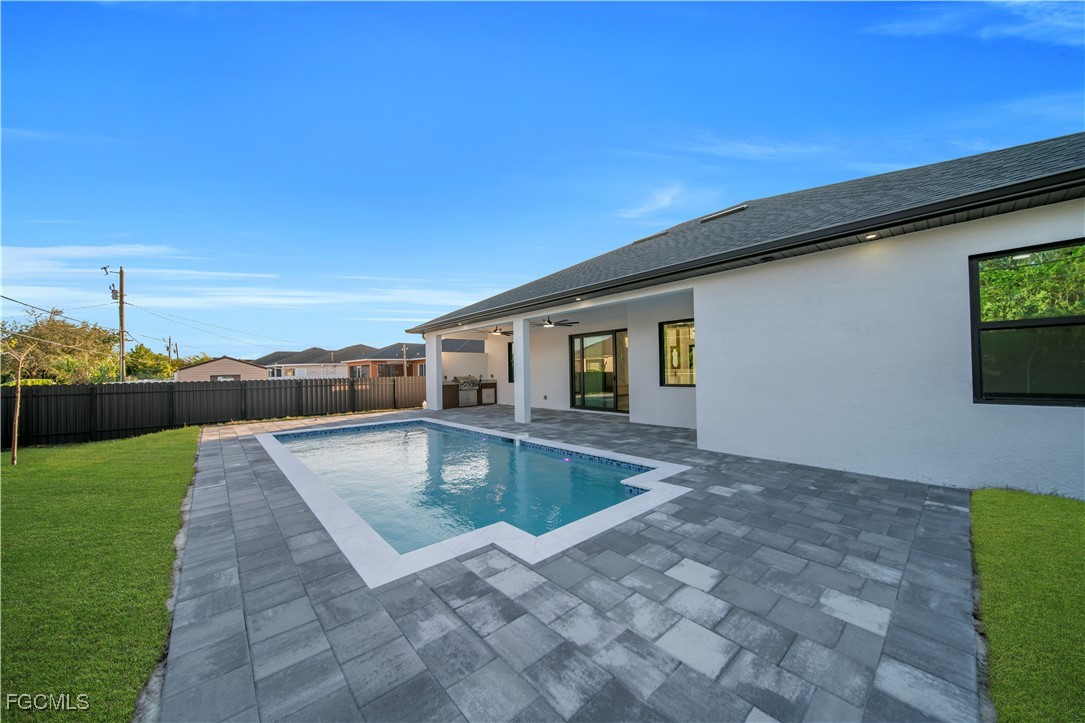 SELLER IS OFFERING $10,000 PLUS AN ADDITIONAL $3,000 WITH THE PREFERRED LENDER TOWARD BUYER’S CLOSING COSTS, FOR A TOTAL OF UP TO $13,000 WITH A FULL-PRICE OFFER. This stunning single-family residence features 3 bedrooms plus a den, 2 full bathrooms, and a convenient half bathroom located outdoors, and a 2-car garage, offering plenty of space for comfortable living. Designed for both relaxation and entertaining, the home showcases a saltwater in-ground pool and a fully equipped outdoor kitchen, perfect for enjoying Florida’s lifestyle year-round. Inside, you’ll find elegant tile flooring throughout, high ceilings, quartz countertops, and stainless steel appliances, creating a modern and luxurious atmosphere. Impact-resistant windows and doors provide both safety and energy efficiency. The property includes city water, with the water assessment paid, adding significant value and peace of mind. Ideally located near Lowe’s, Del Prado Boulevard, and Pine Island Road, this home offers quick access to shopping, dining, schools, and everyday conveniences. The dedicated office/den provides the perfect space for working from home, reading, or relaxing. With its upscale finishes, functional layout, and prime central location, this home is sure to impress even the most discerning buyers. Schedule your private showing today and make this exceptional Cape Coral property your forever home!!