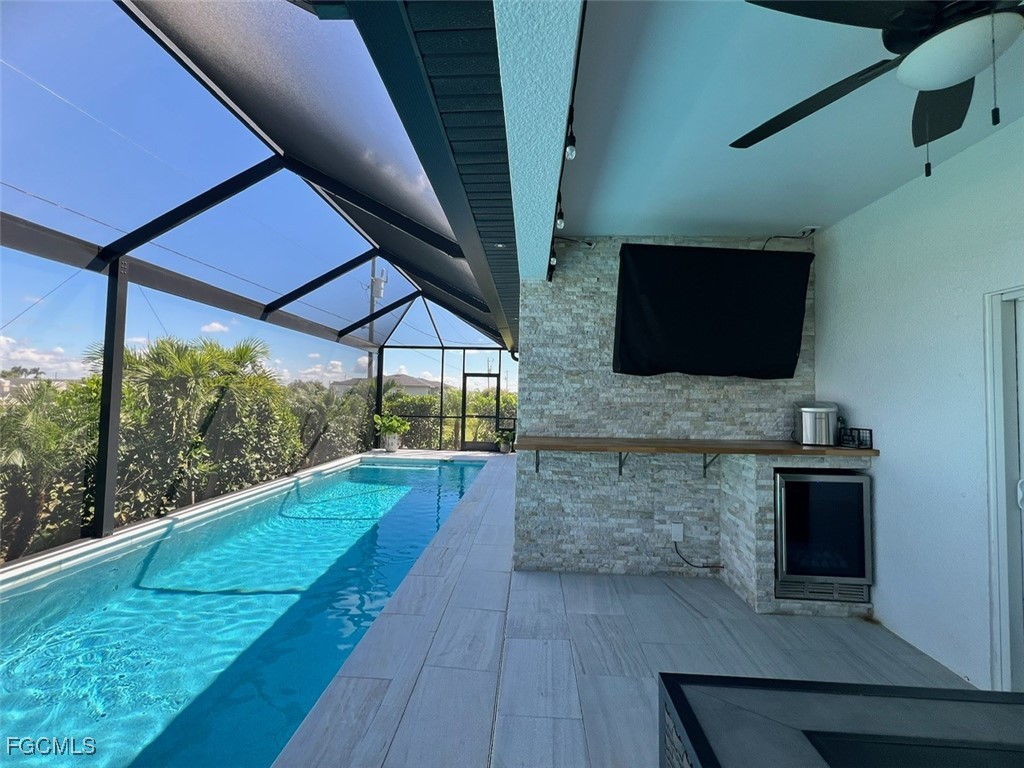 Experience comfort, style, and exceptional value in this 4-bedroom, 2-bath single-family home boasting an open-concept layout with high ceilings, elegant formal dining space, and a well-appointed kitchen featuring granite countertops, Whirlpool stainless steel appliances, Moen fixtures, and LED lighting. Ideal income-producing property with Airbnb zoning, turnkey and fully furnished. Perfect for investors or buyers seeking additional income opportunities. Additional upgrades include a reverse osmosis system, has solar panels and a battery backup system, smart-home controls (solar, pool, alarm, and cameras), and a Wi-Fi garage opener. The battery backup system provides peace of mind during storms. Enjoy a private fenced backyard with a heated saltwater pool and spa, screened lanai, and manicured landscaping perfect for relaxing and entertaining. Prime location in Cape Coral, approximately 5 miles from Burnt Store Marina and close to schools, dining, and entertainment.