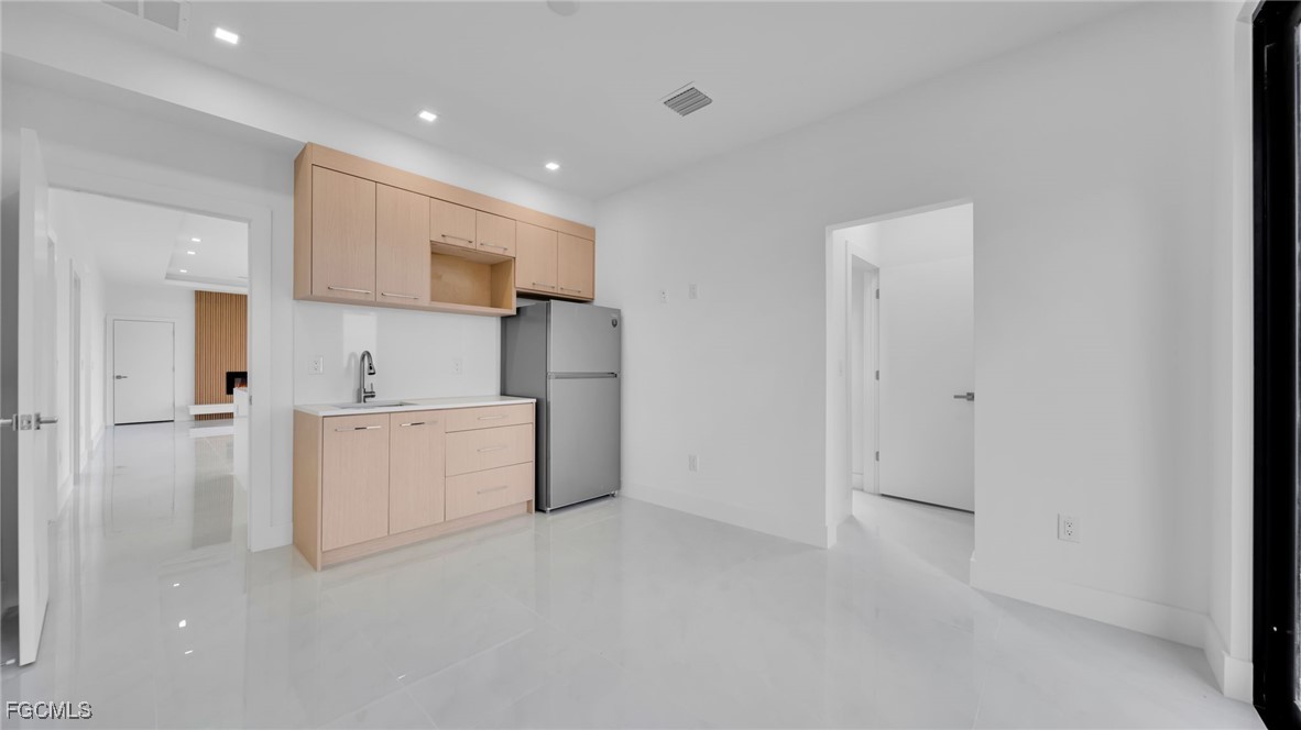 Beautiful home in Cape Coral offering a total of 4 bedrooms and 3 full bathrooms, including a private in-law suite—perfect for guests or extended family. This property features high-end appliances, a whole-house water filtration system, and impact-resistant windows and doors for added safety and efficiency. The spacious primary suite includes a walk-in closet and a private bathroom with a soaking bathtub, creating a relaxing retreat. Enjoy peaceful backyard views of a freshwater canal, providing privacy and a calm setting.