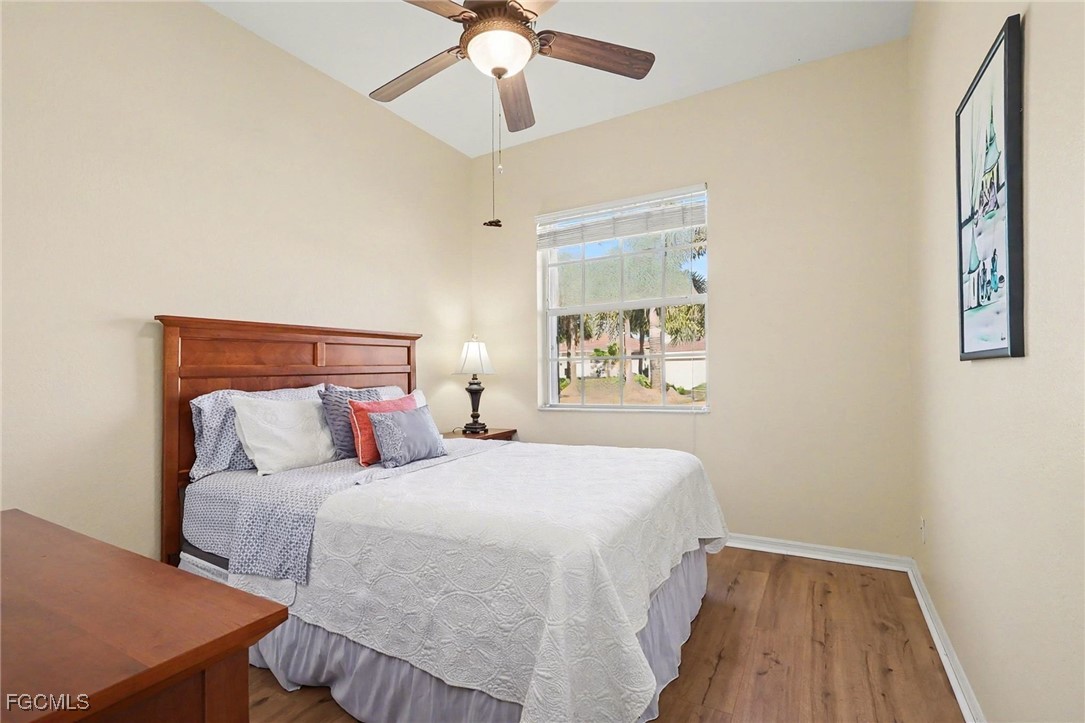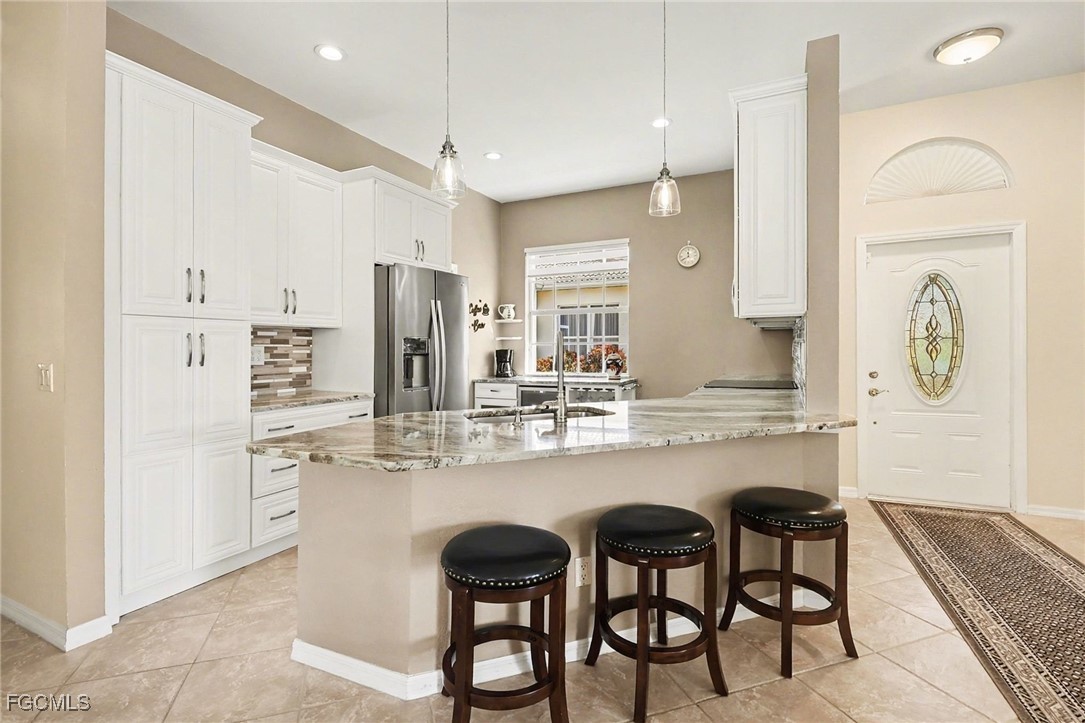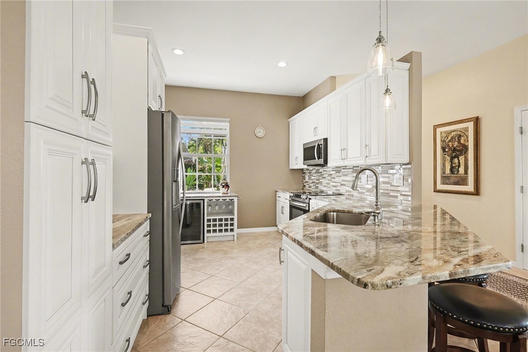 Get ready to fall in love - this home in Laguna Lakes isn’t just a place to live, it’s a place to thrive. Imagine: breathtaking lake views, beautiful sunsets, and upgrades that make you feel like you’re living in a five-star resort. This isn’t just any house - this is where your new, awesome Florida life begins. Located just minutes from the famous Sanibel and Fort Myers beaches, Lakes Park and it's popular Farmer's Market, shopping, top-rated schools, and all the conveniences you need, this home offers the ideal balance of comfort and location. Featuring 3 bedrooms, 2 baths, and a split floor plan, this home is designed for easy living. Step inside to discover a bright and welcoming interior, with newer interior fixtures and laminate flooring in 2 of the bedrooms. The kitchen was completely renovated in 2021 and is a true standout, offering wood cabinets with pull-out drawers, beautiful granite countertops, a tile mosaic backsplash, add on built-in pantry and a coffee bar with wine cooler (installed in 2023) - perfect for your morning routine or entertaining guests. The refrigerator was replaced in 2019, making this kitchen both stylish and functional.The primary bathroom is a true retreat, updated to a large walk-in shower, double sinks, mirrors and fixtures that add a touch of luxury and convenience. The guest bedroom flooring was replaced in 2024, offering a fresh, modern feel throughout the home. The outdoor space is nothing short of spectacular, with a saltwater pool added in 2016 and a newer lanai screen with panoramic lake views & a fountain. Value-packed improvements include a BRAND NEW TILE ROOF installed in January 2026, new garage door opener in 2024, and a (2020) hot water heater. The home is fully protected with hurricane accordion shutters (2016) and comes with a security system for added peace of mind. Plus, Pool heat pump replaced in 2016. Laguna Lakes offers resort-style amenities including a community pool and spa, tennis and pickleball courts, and a fitness center, enhancing the lifestyle this community is known for. This home has been carefully maintained and updated, offering move-in-ready convenience, peace of mind, and exceptional value. Furniture is negotiable.Picture yourself claiming the best seat on the lanai, hosting poolside happy hours, and cooking in the beautifully updated kitchen - because homes like this don’t last long.