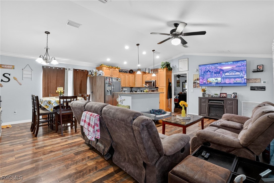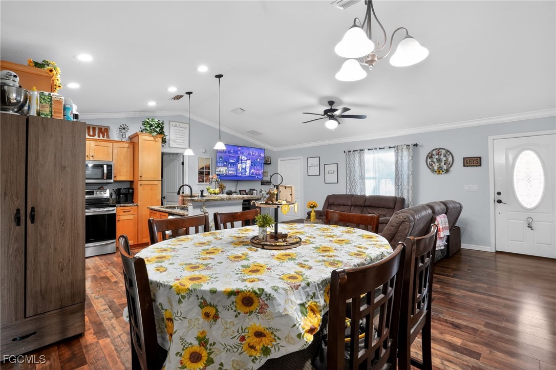 Welcome to this well-kept single-story home offering comfort, functionality, and Florida living at its best. Situated on a spacious lot, this property features an expansive yard, and mature trees—perfect for entertaining, relaxing, or enjoying outdoor living year-round. Inside, you’ll find a bright open-concept layout with high ceilings, updated lighting, and ceiling fans throughout. The kitchen is the heart of the home, showcasing warm wood cabinetry, granite countertops, stainless steel appliances, and a large island ideal for gatherings. The living and dining areas flow seamlessly, creating an inviting space for everyday living and hosting guests. Inside, you’ll find a bright open-concept layout with high ceilings, updated lighting, and ceiling fans throughout. The kitchen is the heart of the home, showcasing warm wood cabinetry, granite countertops, stainless steel appliances, and a large island ideal for gatherings. The living and dining areas flow seamlessly, creating an inviting space for everyday living and hosting guests.