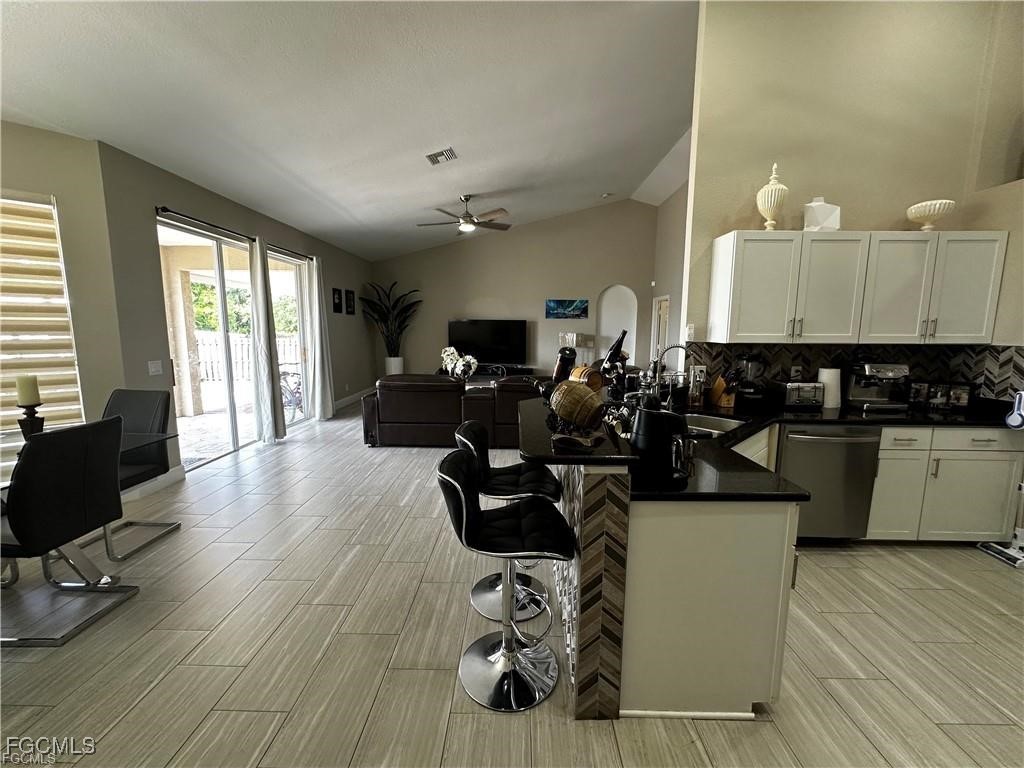 Great location! Great value for a single family home in a good location~~ 4 BEDROOMS AND 2 1/2 BATH ~~~Beautiful updated home, catering to families, part time residents and investors. Moving ready perfect conditions and spotlessly clean. 2024 New Roof. High ceiling with open floor plan. Kitchen opens to the large living room . Updated lighting fixtures and ceiling fans. New water heater. Freshly painted exterior and exterior. New stainless steel appliances and tile floor through out the house. New kitchen cabinets. Granite counter tops.Owner’s suite has pocketing sliders to the lanai, dual vanity with matching granite counters, spacious walk in closet, and separate shower and soaking tub. Split floor plan means the Owner’s suite and guest wing are on opposite side of the home for privacy. Guest half bath has matching cabinetry and granite counters top.