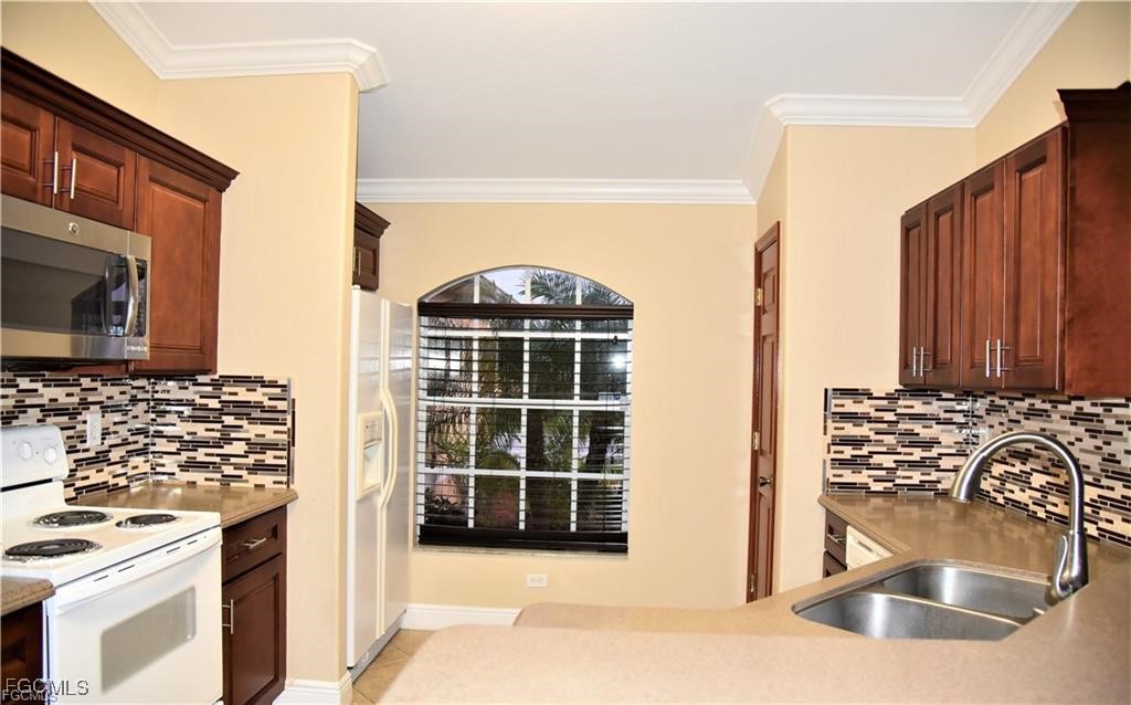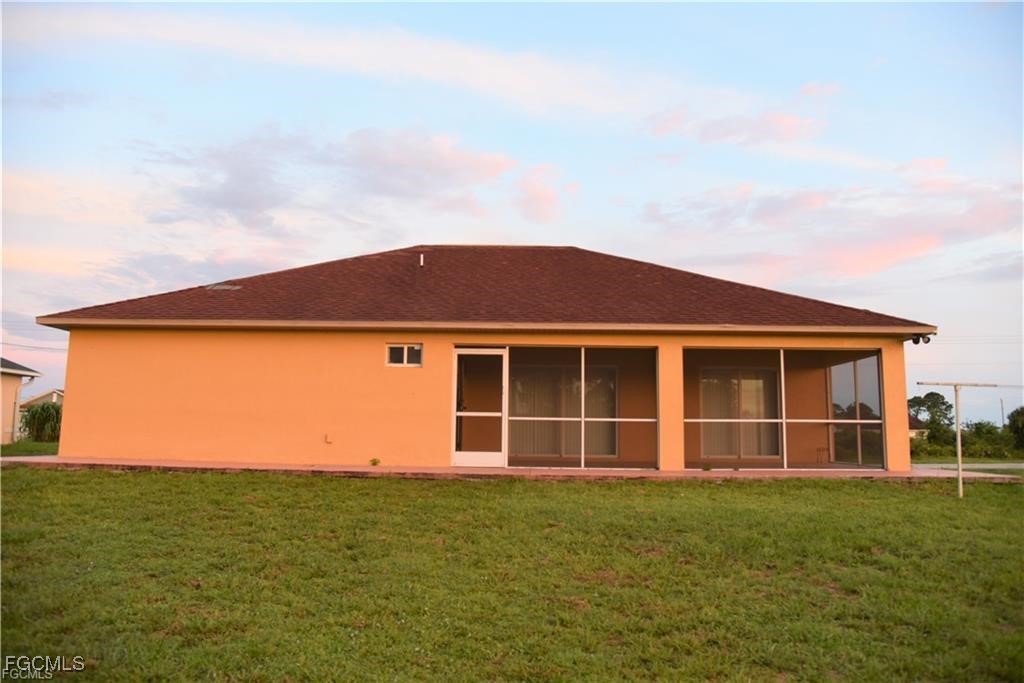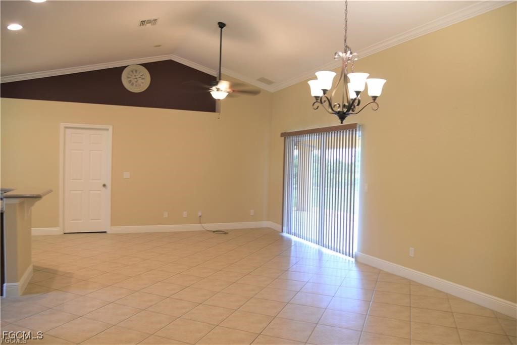 Welcome home to this beautifully maintained 4-bedroom, 2-bath gem with a 2-car garage and a bright, open layout—with NO HOA and NOT located in a flood zone! Enjoy tile flooring and crown molding throughout, cathedral ceilings in the living/dining area, and a stunning tray ceiling in the master suite accented with wood detailing. The master bathroom has been nicely upgraded, featuring a beautifully updated shower. The kitchen offers Corian countertops and wood cabinetry, while the bathrooms feature granite countertops. You’ll love the abundant storage, including generous wall-to-wall closet space in the bedrooms. Step out to the large screened lanai, perfect for relaxing or entertaining, and appreciate extras like the epoxy-coated garage floor, paver walkways/side area surrounding the home, and an IRRIGATION system to help keep the yard looking its best. Added peace of mind comes with IMPACT resistant windows and doors (insurance savings + peace of mind in Florida), a NEW ROOF (2024), and a newer A/C system (2023). All of this is situated on approximately 0.25 acres. Ideally located near Sunshine Blvd, Lee Blvd, and SR-82, with easy access to Southwest Florida International Airport (Fort Myers / RSW), plus shopping, dining, and everyday conveniences just minutes away. This property may qualify for multiple financing options, including Conventional, FHA, VA, USDA (if eligible), and Florida first-time buyer programs, including the Florida Hometown Heroes Program and other down payment assistance options. Buyers should verify eligibility with their lender.