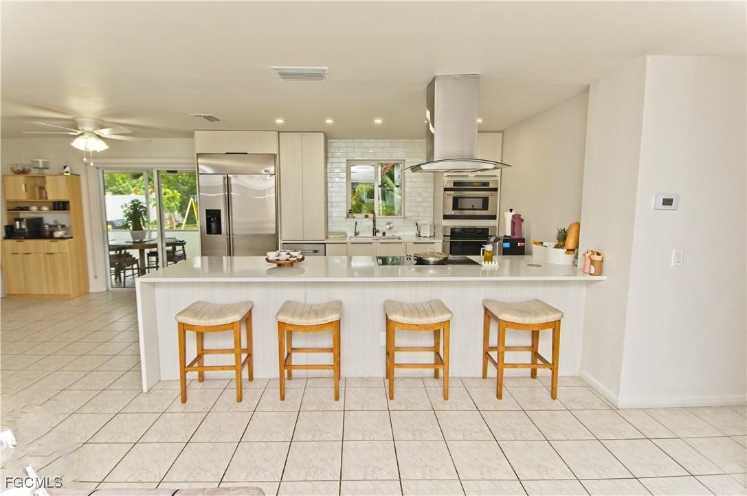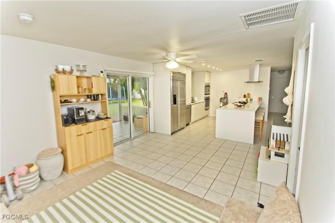 Beautifully updated 3-bedroom, 2-bathroom single-family home in the heart of Cape Coral. Meticulously renovated, this property combines modern amenities with a prime location just minutes from everyday conveniences like Walmart Supercenter, Publix (0.4 miles away), and Walgreens (0.1 miles). Step inside to a bright and inviting interior featuring tile flooring throughout and central air conditioning for year-round comfort. The renovated kitchen is a chef's dream, boasting elegant granite countertops, custom cabinets, and high-end stainless steel appliances. Both bathrooms have been fully renovated with stylish modern finishes. Recent upgrades include a new roof installed in 2023, a brand-new AC system with ducts replaced in 2024, and a new driveway for enhanced curb appeal. For added peace of mind and convenience, the home is equipped with a full-house water filtration and softener system to ensure pure, softened city water, along with a comprehensive Lorex camera security system covering the entire property.