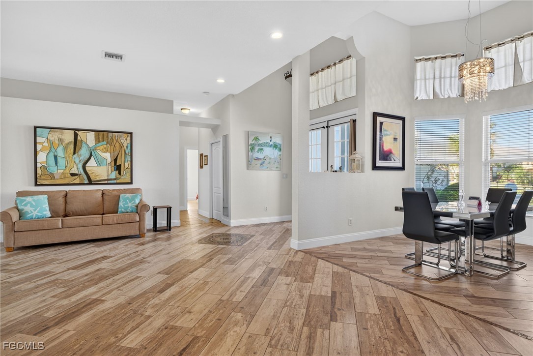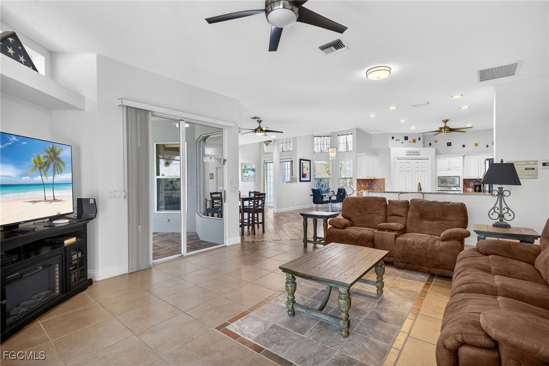 Live a great Southwest Florida waterfront lifestyle in this spacious large open floor plan home on an oversized corner lot. Large volume ceilings with a magnificent waterfront view all the way down the canal with no one looking directly into the back of your home. The exterior of the property has had many updates including new roof, soffits, gutters, aluminum pool enclosure, exterior paint and some landscaping. Along with manual hurricane shutters on all windows. The interior of the home is clean and ready for someone to transform its design into their own! Outstanding features include high ceilings, many windows letting in lots of natural light, a functional and split layout with a bathroom connected to each bedroom (2 potential owner suites and 2 bedrooms with a shared bathroom), along with a separate pool bath, and did we mention a magnificent waterfront view. The beautiful pool and brick paver pool deck offers oversized outdoor party space, along with a great boat dock and a 7k boat lift ready to accommodate your boat and become your gateway to the Gulf of Mexico. This homes water front location offers a beautiful scenic and nature packed ride to the Gulf of Mexico's open water in roughly 30+ minutes. This property offers a great opportunity for someone to continue transforming the interior into the million dollar home it has the potential to be! The sellers have loved this home but are now looking to downsize and passing the upside potential opportunity on to a future homeowner. This home is located in a area of beautiful homes and overall peace and tranquility in SW Cape Coral and did not have interior flooding through any storms.
