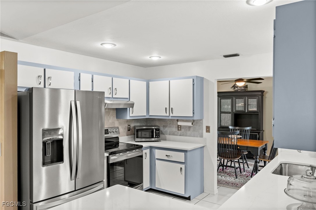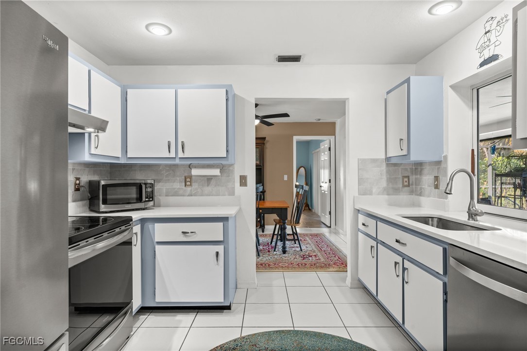 The freshly updated kitchen includes quartz countertops and newer stainless steel appliances, while no carpet throughout provides a clean, modern look and easy maintenance. All bedrooms are generously sized and include walk-in closets.