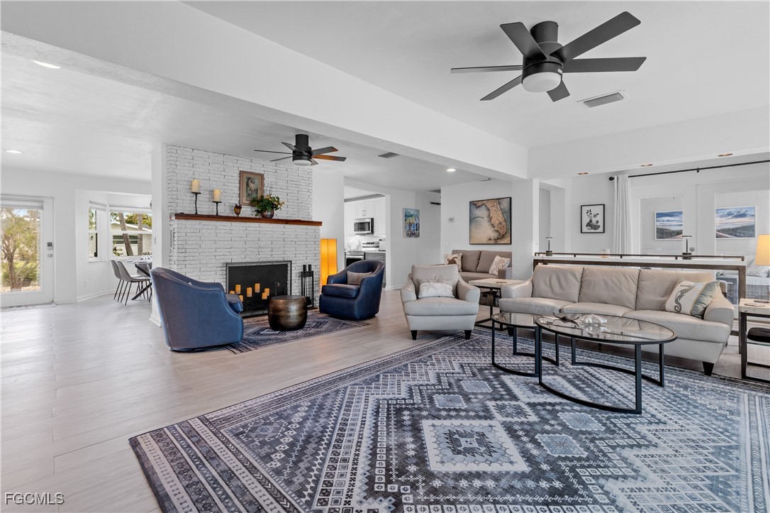 Experience the ultimate blend of beachside living and boating paradise just six homes from the Cape Coral Yacht Club and Beach, where major redevelopment is underway. This beautifully updated Key West–style home offers 2,747 sq. ft., 4 bedrooms, 2.5 baths, a large flex office/utility room, and sits on a rare Southern-exposure, 3-lot site, mid canal, sailboat-access canal with no bridges—only three minutes to the Intracoastal and direct Gulf access. Ask a local or builder, many prefer rear Southern exposure, providing a sunny pool, with warm breezes coming into the home from the south versus rear North exposure with typically less sun on the pool and cold breezes coming in from the North. A true boater’s dream, the property features an impressive 120 feet of seawalled waterfront, a Captain’s Walk composite dock, 13,000-lb lift with canopy, and a huge resort-style heated pool and spa finished with stunning ocean-blue glass tile, a sun-ledge water feature, and spa. Outdoor living shines with a paver sundeck, new panoramic-screen pool cage, lush tropical landscaping, and state-of-the-art flood gates designed for advanced hurricane and flood protection.