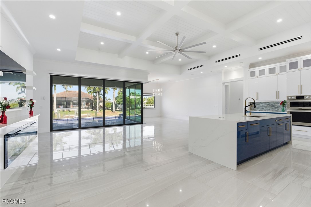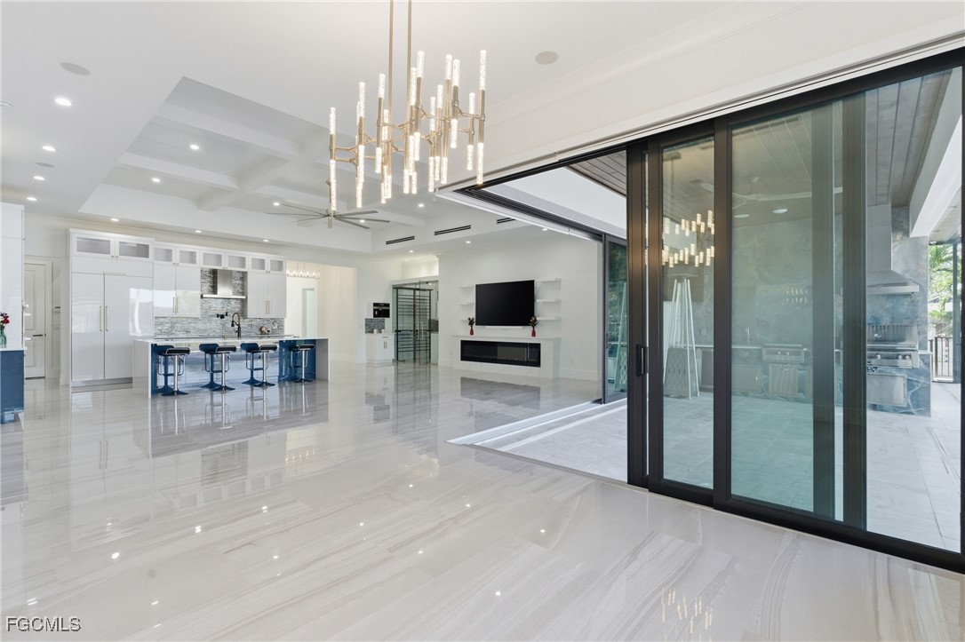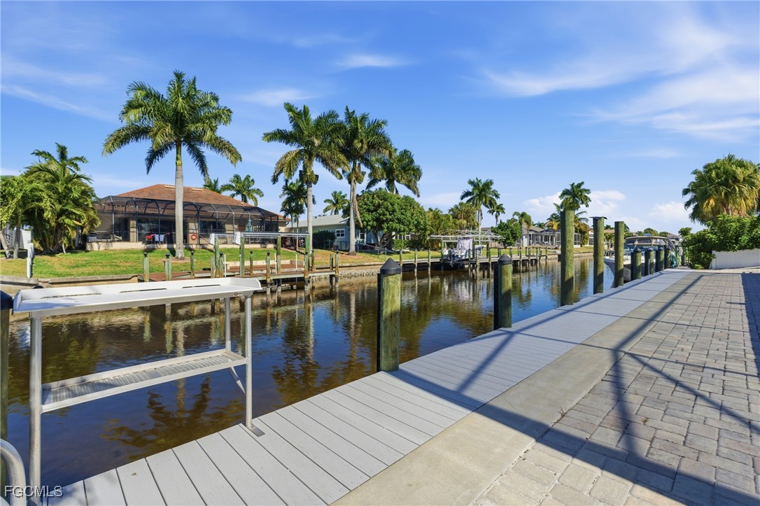 Welcome Home! Located just a 5-minute walk to Cape Coral Beach, and near the upcoming Cape Coral Yacht Club, marina, and Tiki Bar & Grill (currently being rebuilt), this home offers both lifestyle and long-term value. Enjoy easy access to Pine Island Sound, part of the Charlotte Harbor estuary system—where the Gulf of Mexico, San Carlos Bay, and Caloosahatchee River converge, offering some of the best fishing in the state. Luxury. Location. Lifestyle. Sail around the world from your backyard! This is more than a home—it’s a gateway to waterfront living at its finest. Built in 2022, this exceptional waterfront estate blends modern luxury with timeless coastal design and true sailboat access. Offering 5 bedrooms plus an office/den space with private entry, 7 bathrooms, and a 3-car, temperature-controlled garage, every detail has been thoughtfully curated for comfort, functionality, and elevated living. The grand entry welcomes you with 14-foot ceilings, opening into expansive living spaces with 12-foot ceilings, soft-close cabinetry, and seamless indoor-outdoor flow. The chef’s kitchen features an oversized refrigerator, electronic charging outlets built into the island, premium finishes, and a separate wine room with double wine dispenser—perfect for entertaining at scale. Designed for both luxury and efficiency, the home includes hurricane-resistant windows and doors, a metal roof, three AC systems, an 80-gallon commercial-grade water heater, whole-house water softener, and custom closets throughout. Outdoors, enjoy a heated saltwater pool with fountain and spa, pinewood ceiling accents, integrated speakers, and exterior WiFi—creating a private resort experience. With direct sailboat access, you can cruise to Key West, explore island destinations, or head to world-class fishing waters right from your backyard before sailing around the world from your backyard!