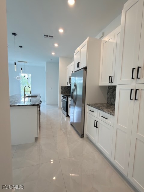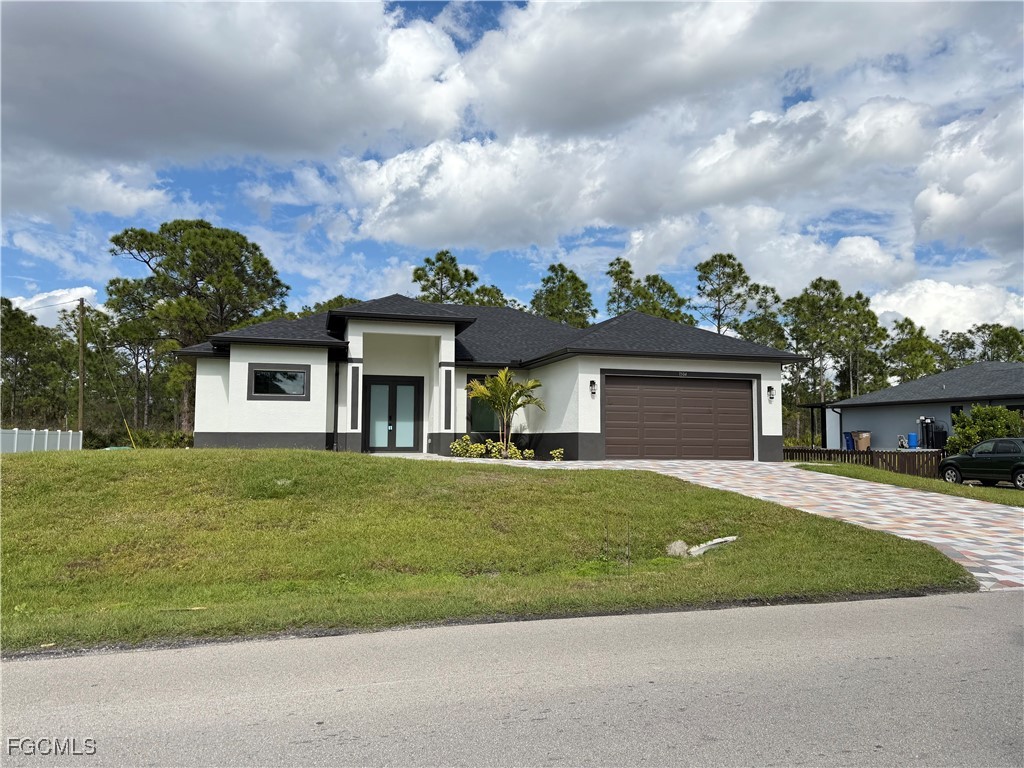 New Construction** This stunning 3-bedroom, 2-bathroom home features a den/office, perfect for those who work from home, and a 2-car garage. It's located in a peaceful residential area that strikes a balance between privacy and convenience. Upon entering, you will be welcomed by a double-door entryway and tile flooring throughout the home. The open-concept layout enhances the spacious feel, while the high-end custom kitchen boasts a large island and elegant quartz countertops. The master bedroom includes expansive his-and-her walk-in closets, dual sinks, and a separate walk-in shower stall. For added safety, the home is equipped with hurricane-impact windows and doors. Step outside to a covered terrace that offers plenty of space for you to create your dream pool in the expansive lot. Situated in the heart of Lehigh Acres, this home is conveniently close to restaurants, schools, and shopping. Don’t miss this opportunity to enjoy space, comfort, and modern convenience all in one place! CLOSING COST CONCESSIONS AVAILABLE!!