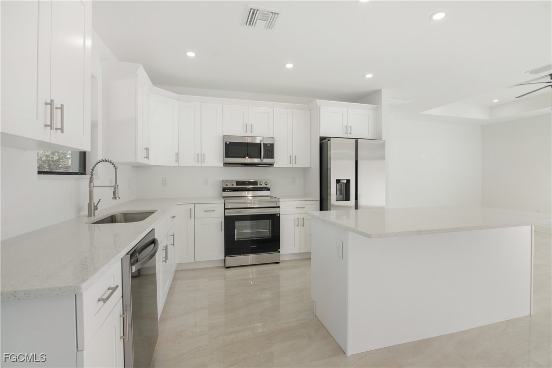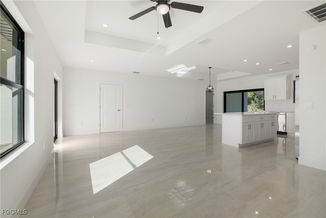 Beautiful modern brand New home located in the heart of Lehigh Acres, situated in a rapidly growing and highly desirable area. This property features 3 bedrooms, 2 bathrooms, a 2-car garage, and a laundry room, with approximately 1,600 sq ft of living space and a functional, elegant layout highlighted by continuous tile flooring throughout, offering both style and easy maintenance. The spacious kitchen includes quartz countertops, ample workspace, and storage. All light fixtures and ceiling fans are included, and the home is finished in neutral colors, making it easy to personalize. Equipped with impact-resistant windows and doors, this home provides added security and energy efficiency. Enjoy a large lanai, perfect for relaxing or entertaining, and a ¼-acre lot offering plenty of space for a pool, outdoor living, or future expansion. No HOA fees and no association restrictions. Not located in a flood zone. Ideally located just minutes from Sunshine Blvd, with easy access to Lee Blvd, I-75, Miromar Outlets, FGCU, The Airport RSW and the Red Sox Training Stadium. This is an incredible opportunity at an exceptional price. Don’t miss your chance to own a home in Southwest Florida!