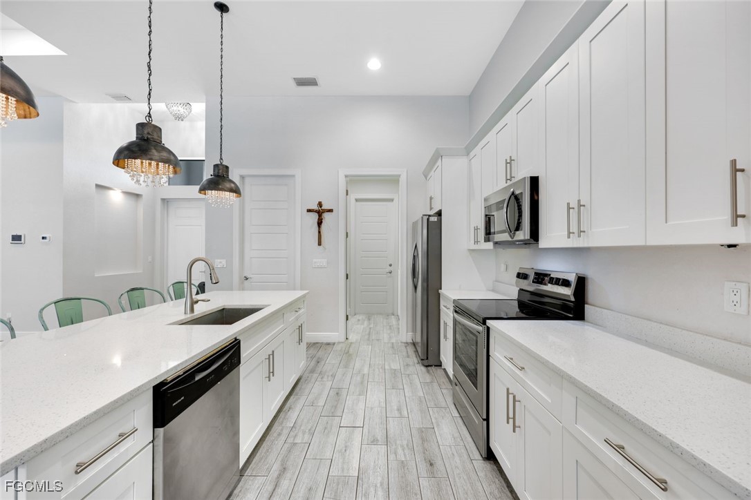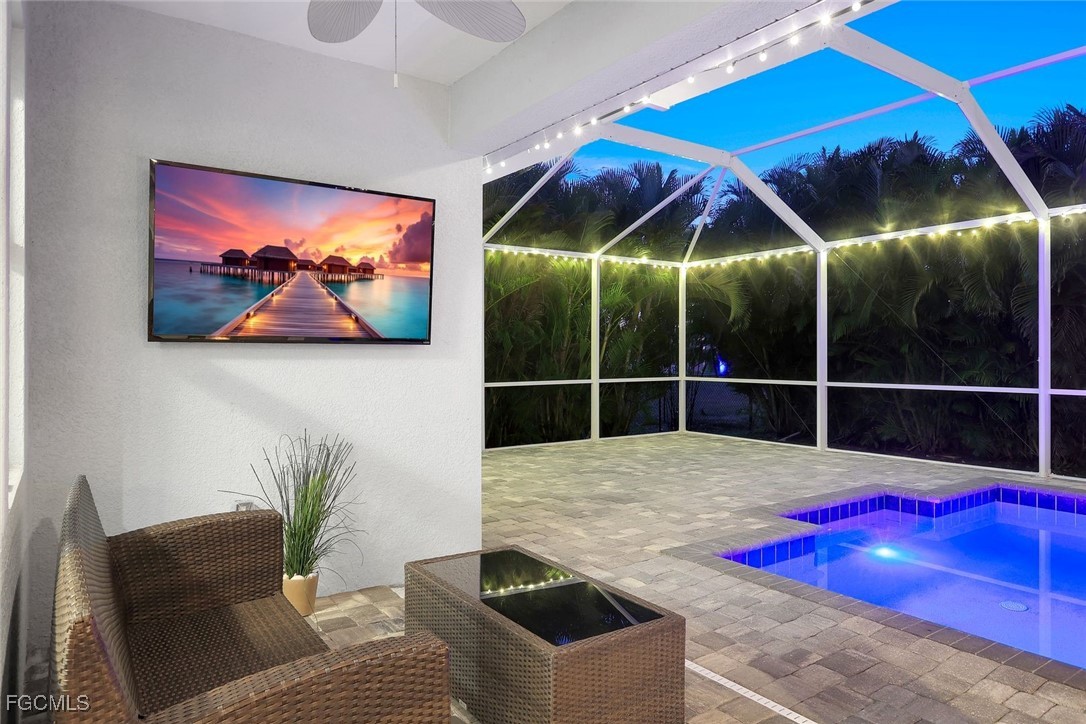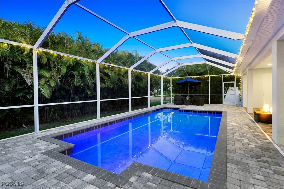 Completely Off-Grid Luxury Oasis in SW Cape Coral Welcome to your private off-grid sanctuary in one of Southwest Cape Coral’s most sought-after neighborhoods—where luxury, resilience, and resort-style outdoor living come together. This home operates completely OFF-GRID, powered by solar panels (owned NOT Leased) and a dual Enphase battery backup system (owned NOT Leased)—providing true peace of mind during storms and outages. The property never lost power during Hurricanes Ian, Helene, or Milton, while surrounding homes relied on non-working generators due to propane shortages. Additional highlights include an EV charging outlet, brand-new roof (2024), and new A/C system (August 2025). Even better, enjoy a transferable flood policy under $1,500 per year, no interior flooding, and city water, sewer, and irrigation with all assessments paid in full. Built in late 2018, this like-new 4-bedroom, 3-bath pool home is surrounded by multi-million-dollar residences and is just 5 minutes from premier dining, shopping, banking, and entertainment. Interior Features Step inside to soaring 12’ ceilings, designer plank tile throughout, 13’ tray ceilings in the living room, and 10’ tray ceilings in the primary suite. The chef’s kitchen is the heart of the home, featuring: 42” all-wood cabinetry Quartz countertops Massive center island Stainless steel appliances Stylish pendant lighting Impact windows and doors, 8’ interior doors, upgraded trim, and blinds throughout add both elegance and durability. The spa-inspired primary suite offers a freestanding soaking tub, frameless glass shower, and refined finishes designed for comfort and relaxation. Outdoor Oasis Paradise Step outside to an extraordinary 1,702 sq. ft. screened lanai spanning the entire rear of the home—an entertainer’s dream. The oversized heated pool features a multi-color LED lighting system, perfect for both daytime lounging and evening ambiance. A dedicated pool bath, paver pool deck, soffit lighting, and lush landscaping elevate the experience. The professionally designed tropical landscape includes four mature Royal Palms, three Christmas Palms, one Foxtail Palm, and towering Areca Palms up to 20 feet high, creating a private resort-style retreat you’ll never want to leave. Additional Highlights 2,010 sq. ft. under air | 4,298 total sq. ft. Paver driveway This home delivers the rare combination of off-grid independence, modern luxury, and an unmatched outdoor living experience—all in a prime SW Cape Coral location.