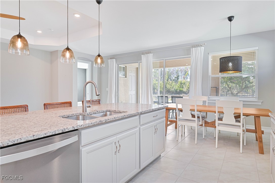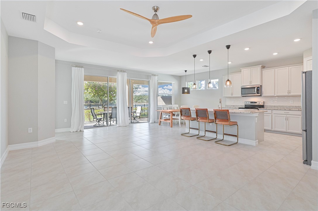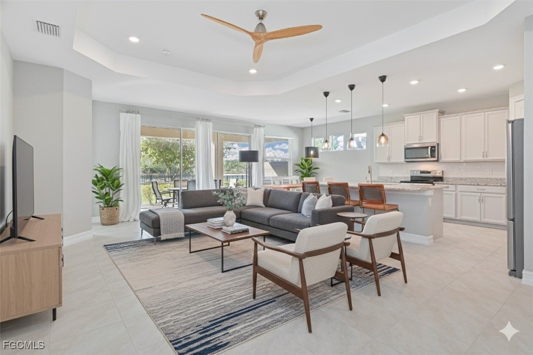 Rarely available Barrymore floorplan with a tandem garage, this beautifully maintained home features 3 bedrooms, a den, and 3.5 baths, the layout is both spacious and functional. The kitchen shines with grey cabinetry, stainless steel appliances, and granite countertops, complemented by tile and carpet flooring throughout and elegant 11’ tray ceilings. Enjoy outdoor living in the fenced-in yard on a premium lot with western exposure showcasing serene lake and preserve views—perfect for breathtaking sunsets. The community offers outstanding amenities including a resort-style pool, fitness center, basketball court, and tennis courts. The John Yarbrough Bike & Jog Path runs right through the neighborhood, ideal for an active lifestyle. Conveniently located close to I-75, shopping, restaurants, and the airport, this home delivers both tranquility and accessibility. To top it off, the sellers are offering a 1-year home warranty for added peace of mind. Schedule your showing today!