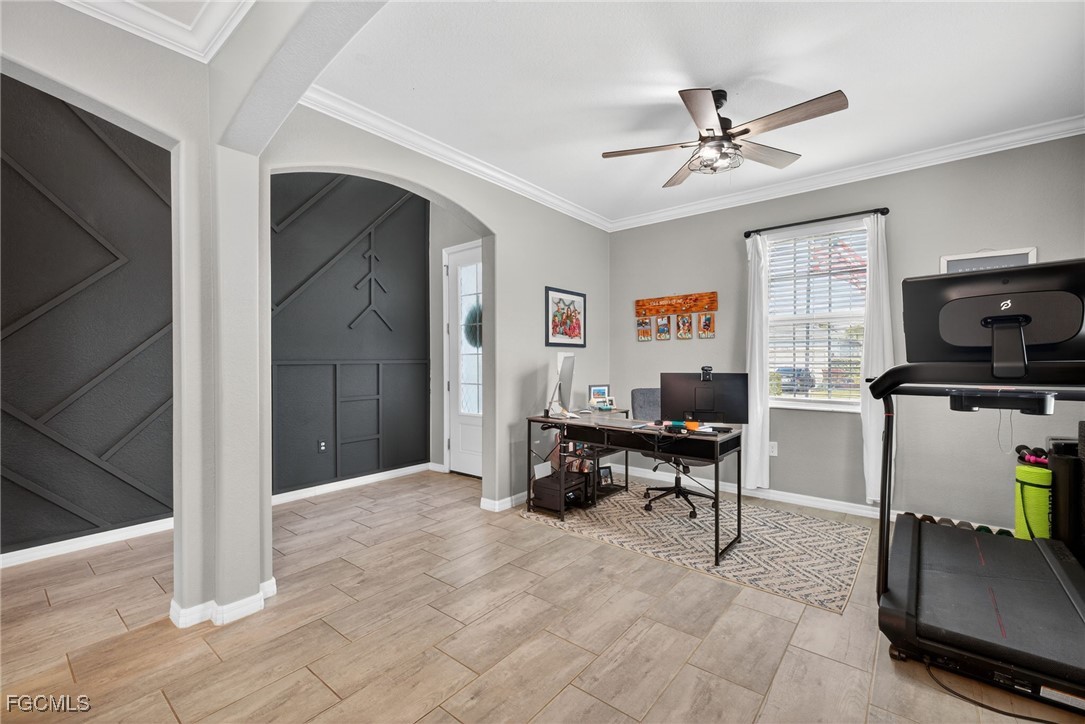 Inside, you’ll find a show-stopping custom built-in entertainment center with fireplace, complemented by designer custom carpentry feature walls and premium interior paint throughout. The gourmet kitchen is a true centerpiece, featuring an upgraded refrigerator, enhanced cabinetry finishes, designer backsplash, large upgraded sink, and elegant details that elevate both form and function. The expansive primary suite offers a spa-like retreat with upgraded master bath features and finishes, while upgraded tub and shower trim adds refined touches throughout the home. A spacious laundry room and ceiling fans in every room provide everyday comfort and convenience.