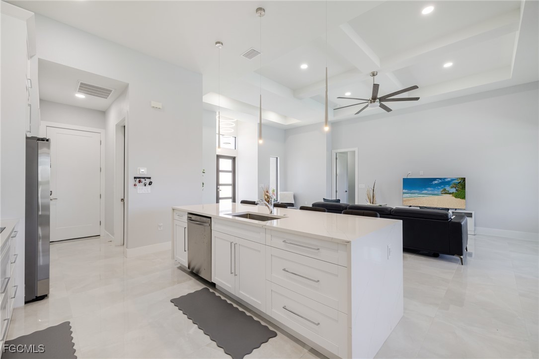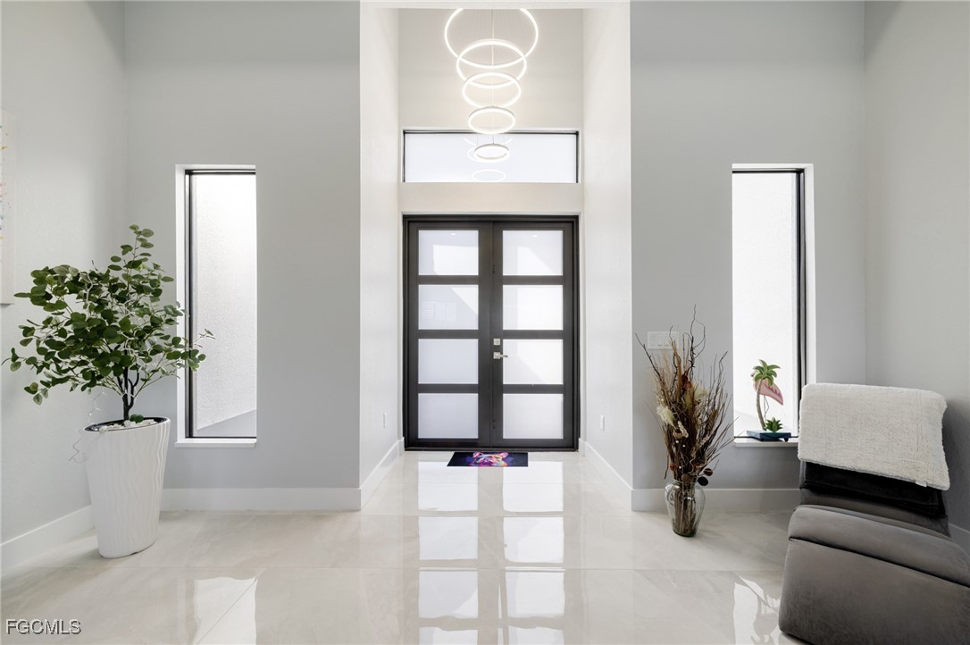 Welcome home to this stunning newly constructed gulf access pool home, designed for effortless Florida living. Inside, you’ll find an open, light-filled layout with soaring 12-foot ceilings and expansive windows that create a seamless flow throughout the home. Porcelain tile flooring, complementing the clean, modern design. The kitchen is both stylish and functional, featuring quartz countertops with a waterfall island, state-of-the-art appliances, and custom cabinetry. The home offers three spacious bedrooms and three full bathrooms, each thoughtfully designed with high-end finishes. The primary suite is a true retreat with sliding doors leading directly to the lanai. The spa-inspired primary bathroom includes dual vanities, two walk-in closets, a contemporary freestanding soaking tub, and a large walk-in shower. One guest bathroom leads out to the pool, while the third bedroom features its own private ensuite. Your private backyard oasis, complete with a sparkling pool, an oversized extended lanai, and a fully equipped outdoor kitchen—perfect for entertaining or relaxing at the end of the day. Impact-resistant windows and doors to add to the home’s quality and durability. Located in a desirable waterfront community with easy access to shopping, dining, and local amenities, this home truly offers the best of luxury coastal living. This is one you don’t want to miss.