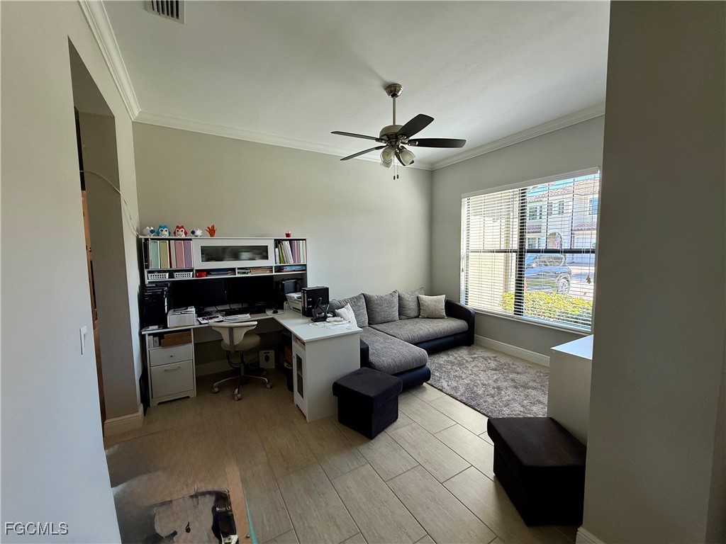 2800 sqft Home has 3 bedrooms with den which also can be used as a fourth bedroom. Large living room with open white kitchen, which has a large island (granite counter) with seating and a good size pantry. Also a dining area with lake view, The outside is very relaxing with Screened Pool area. Pool offers sunshelf and waterfall, together with the Lake view, the perfect place to enjoy the Florida sun. The HOA fees including cable, internet and lawn care and maintenance, Near new Gateway school. Hampton Park features a beautiful resort style Pool, Fitness Center, Clubhouse , billiard room, Community spaces, playground and basketball as well as pickleball courts. Furnitures are negotiable and can stay, since owner moving back to Europe. Also the location is close to international airport, local beaches, shopping malls, fine dining, and more.