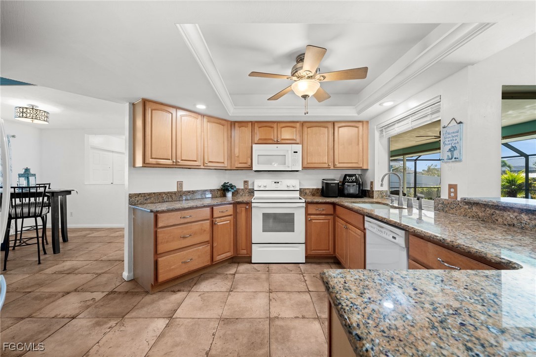 Out back, enjoy a large covered and screened lanai with pool, ideal for relaxing or hosting friends, while your boat is just steps away. A 2-car garage, mature landscaping, and pride of ownership throughout complete the package.