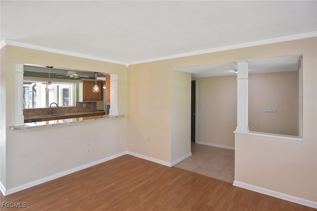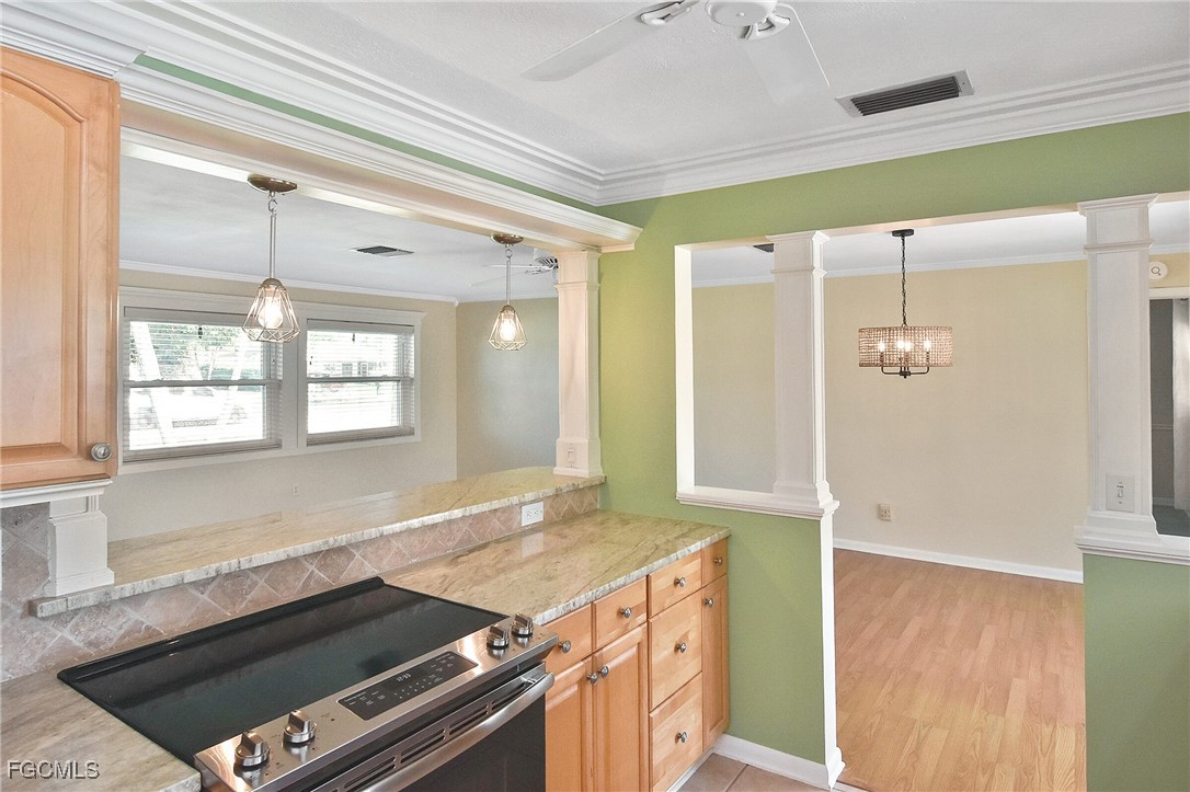 Inside, open living and dining areas are filled with natural light and water views. The updated kitchen showcases granite countertops, ample cabinetry, and generous workspace, anchoring the home for both everyday living and entertaining.