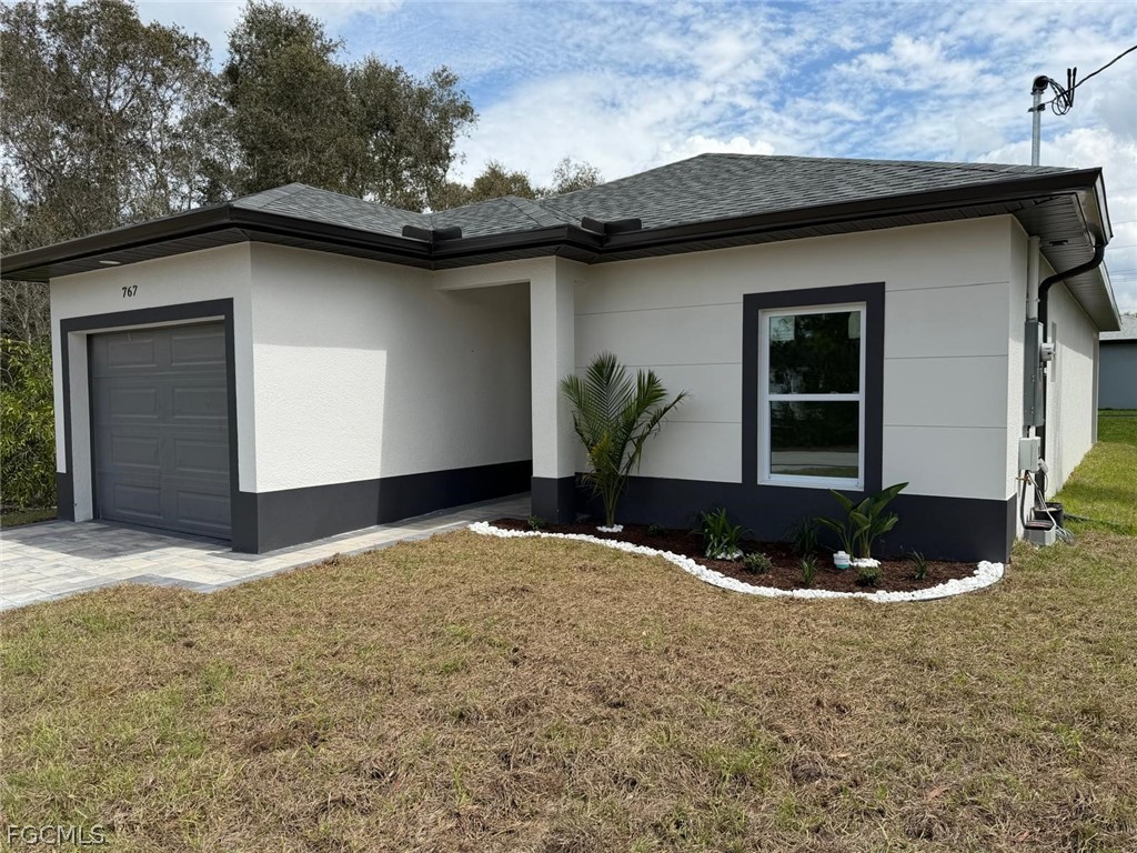 Beautiful new construction home with high ceilings and a bright open floor plan. Modern kitchen, stylish bathrooms, and an oversized master suite with lanai access. Great location near State Road 82.