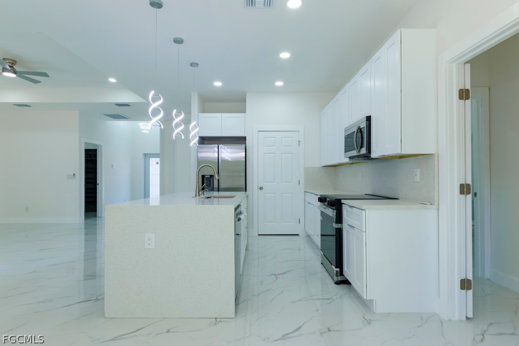 0.50-acre lot in the growing community of Lehigh Acres, very well located, offering space and privacy with room to build a future pool. This new construction home features 1,700 sqft of thoughtfully designed living space with 4 bedrooms and 3 full bathrooms, an open-concept layout filled with natural light, impact-resistant windows and doors for added protection and energy efficiency, a lanai to enjoy the Florida lifestyle, a modern kitchen with stainless steel appliances, plus washer and dryer included; move-in ready and an excellent opportunity as a primary residence or investment in one of Southwest Florida’s fastest-growing areas.