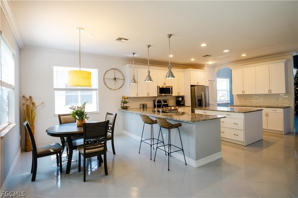 This stunning 4-bed, 4-bath home in gated Olympia Pointe offers ~3,000 sq ft of luxury living. Features updated kitchen with granite counters, stainless appliances, a fireplace feature wall, and fresh exterior paint. Spacious layout with room for a pool, 2-car garage, and extra-wide driveway. Just minutes from Fort Myers International Airport, enjoy low HOA fees, a 4,000 sq ft amenities center with pool, fitness, and clubhouse. Move-in ready—don’t wait, schedule your tour today!