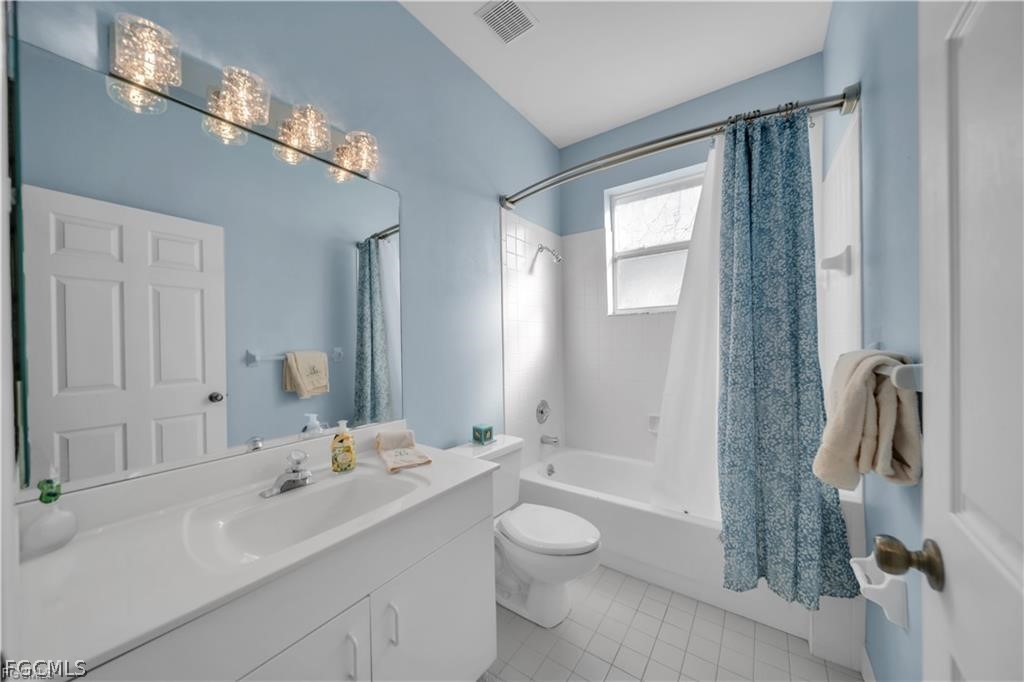 The spacious primary suite and guest bedroom each include GENEROUS WALK-IN CLOSETS. The primary bath is appointed with a DUAL VANITY and UPDATED LIGHT FIXTURES, creating a bright and polished retreat. Ceiling fans in the primary suite, den, and lanai enhance year-round comfort.