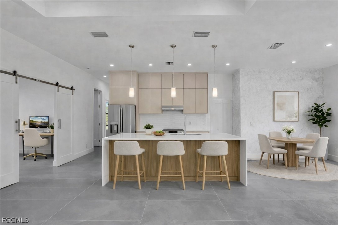 Brand-new 2026 construction featuring 3 bedrooms plus a versatile den, designed with modern architecture and elevated finishes throughout. Soaring ceilings and tile flooring throughout the entire home — no carpet — create a bright, open feel from the moment you enter. The open-concept layout flows seamlessly into a chef-style kitchen with an oversized island offering cabinetry on both sides, push-open and soft-close cabinets, and a spacious walk-in pantry. Expansive sliding glass doors lead to the covered patio, providing natural light and indoor-outdoor living. Notable upgrades include high-end plumbing fixtures and shower heads, Toto toilets, and a spacious walk-in shower featuring a bathtub integrated within the shower enclosure for a sleek, modern design, along with USB-integrated outlets, modern interior doors and hardware, a Rheem Gladiator water heater, and epoxy-coated garage flooring. The den offers flexible space for an office, media room, or additional living area. Situated on a private well and septic system. Seller motivated; identical floor plan available at additional addresses. Assistance available in English, Spanish, and Portuguese.