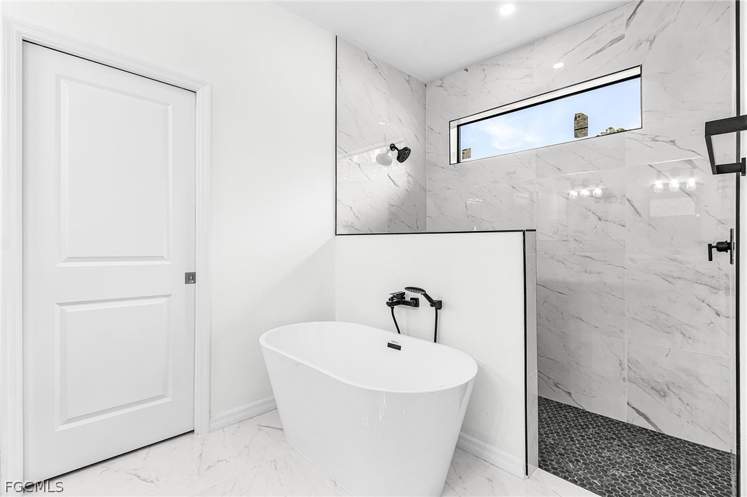 The primary suite includes a generous walk-in closet and a luxurious bathroom with dual vanities and a frameless glass shower.