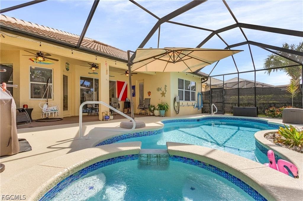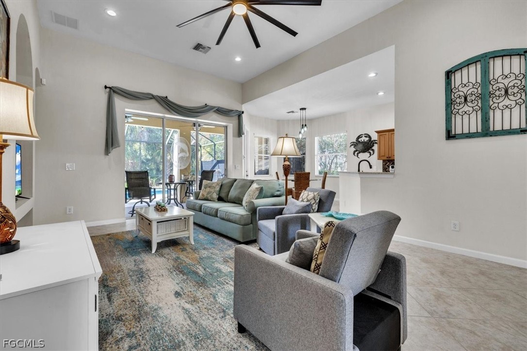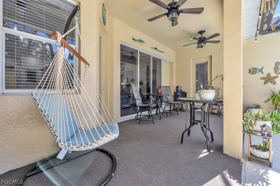 A rare opportunity has arisen to own a stunning home in the beautiful gated community of Verandah, with no membership required. This means a savings of $22,365 on the one-time fee, plus $274 a month. The home is loaded with upgrades and features, with sellers having invested a significant amount of money in improvements, making it virtually move-in ready. The property offers 1843 sq. ft. of living space, including 2 bedrooms, a flex den or bedroom, and 2 baths, as well as an expansive lanai with a northern rear exposure. Standout features of this home include an industrial-grade, top-of-the-line tile roof installed in 2024 with a Limited Lifetime Transferable Warranty, a new A/C unit (2023), a newly resurfaced pool and spa with new lighting, white cabinet refacing in the Kitchen, bright & open Breakfast nook, Stylish backsplash in Kitchen, Quartz Countertops, custom Bamboo pull-out shelves plus large pantry, tray ceilings, diagonal tile in the main areas, newer refrigerator and electric pool heater, a phantom door at the front entrance, custom cabinetry throughout the home for added storage, enhanced lighting and fan fixtures, and attractive window treatments. Upon entering the home, the open feel is immediately noticeable. The den and guest bedroom are both spacious, with the den offering flexibility as a flex room. The master bedroom features an attractive 12" tile, access to the lanai, and spacious closets. The master bathroom boasts dual sinks, a vanity, and a separate tub and walk-in shower. One of the home’s inviting features is that it has a separate dining room just off the kitchen-thoughtfully positioned to allow for elegant dinners and enjoyable gatherings while keeping the kitchen workspace separate. It’s the perfect balance of connection and privacy when entertaining! NOTE: No Membership is required to purchase this home however a buyer can join if interested. Additionally it has an assumable mortgage with an interest rate of just under 3%. This home is situated in the Verandah Community, which offers a wide array of amenities for its members. These amenities include 2 championship golf courses designed by Jack Nicklaus and Bob Cupp, tennis, pickleball, a state-of-the-art fitness center with an attendant, bocce, kayaks, a dog park, playground, 9 miles of walking and jogging paths, multiple restaurants, and a full activity calendar of events, classes, and fun programs. With all of these unique features and upgrades, this home is perfect for entertaining family and friends. This home is sure to attract a lot of interest, so don't miss out on the opportunity to secure your place in paradise now!