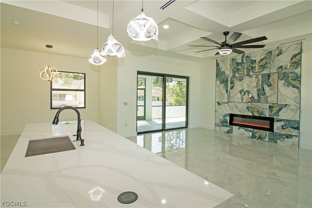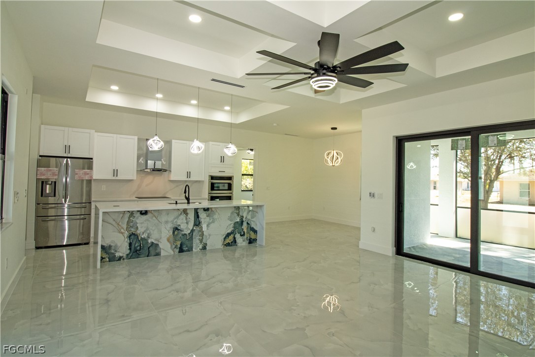 .Welcome to this stunning new-build (2026) home on a spacious lot in one of the fastest-growing areas of Lehigh Acres, Florida. This home features 4 bedrooms and 3 bathrooms, a spacious master suite, and custom closets. Enjoy the large kitchen with an oversized island that adds a touch of elegance to the modern kitchen, equipped with brand-new stainless steel appliances. High ceilings provide abundant natural light, and a deck with an outdoor kitchen and protective netting is perfect for family gatherings. This beautiful property offers abundant LED lighting throughout, a modern fireplace, impact-resistant doors and windows, a 2-car garage, and an in-house washer and dryer. The interior of this home boasts unique and luxurious features. Can't find the perfect home? Trust me, this is it. Ready to show.