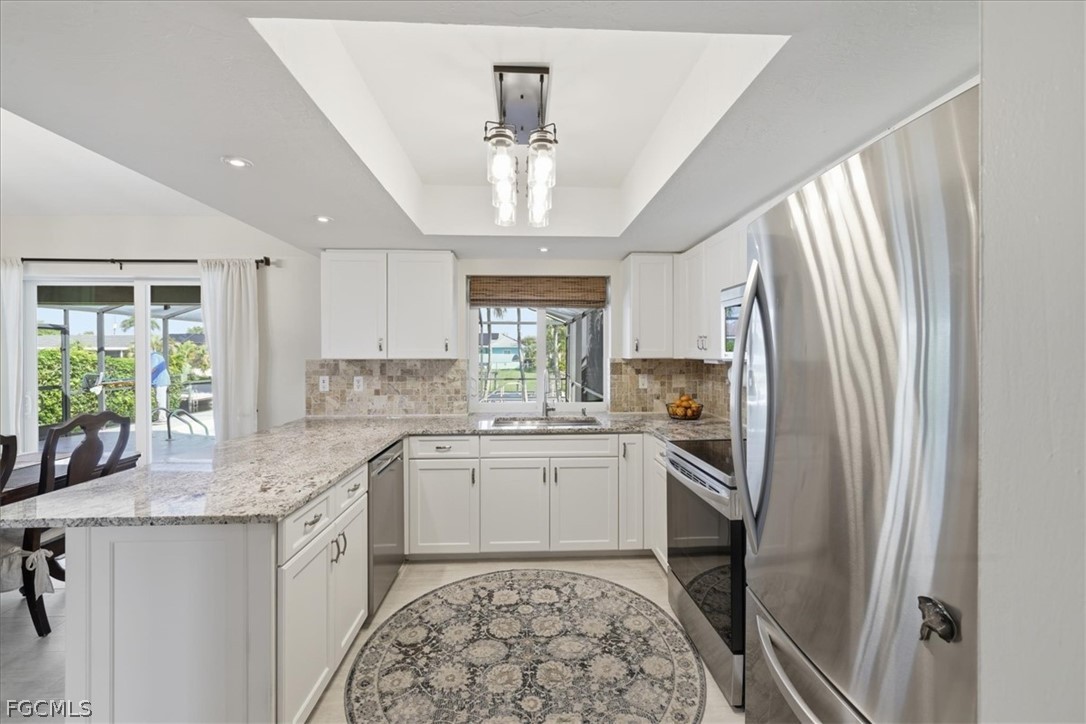 *X Flood Zone* Heated Pool * Boaters will love the captains walk boat dock and 7k# lift with recently installed durable composite decking. Designed for seamless indoor /outdoor living, the Impact sliding pocket doors open to a large tiled Lanai, Heated Pool, Epoxy pool deck and pool bath access all screened with the no seeum screen. A modern kitchen, tile floors & renovated bathrooms offer a move in ready home. Live Worry Free with the Major improvements of Metal Roof & Impact Windows and Doors plus an X Flood Zone. The location provides quick and convenient access to the Gulf by boat and to a plethora of restaurants and shopping by car. This Move in Ready Waterfront Pool home delivers the best of Cape Coral living.