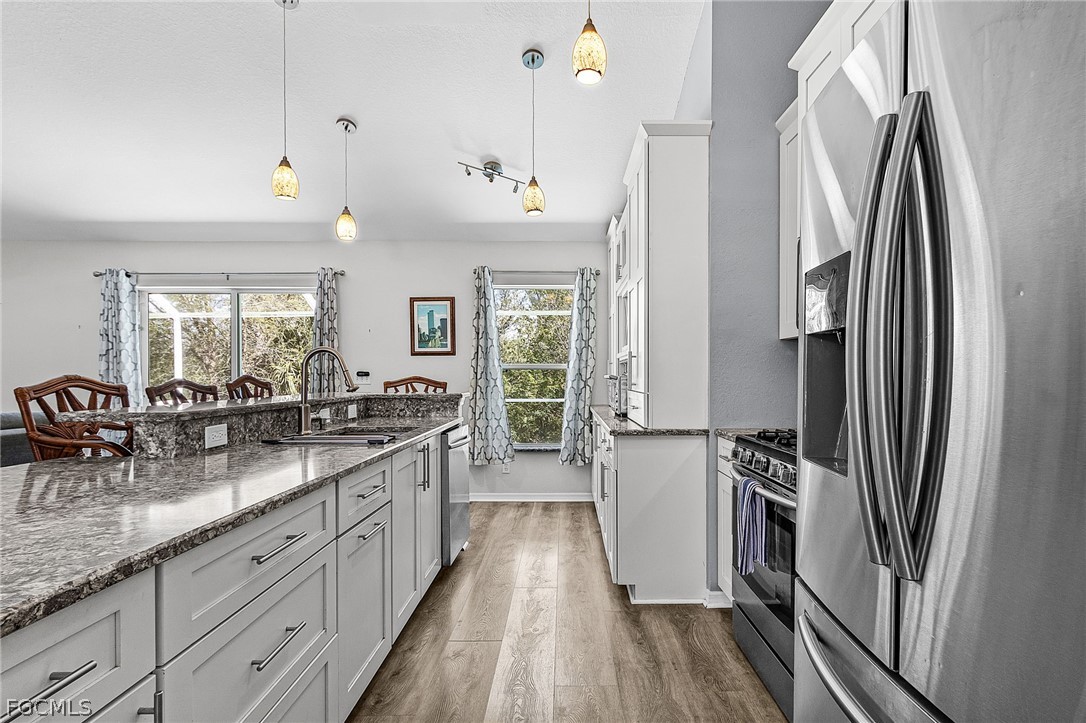 Lovely, well maintained, pool home in quiet, safe, St James City. Just a bike or golf cart ride away from all that this community has to offer. This home has not flooded in any of the storms. High and dry. It features a completely redone chef's kitchen, newer luxury vinyl plank flooring, newer countertops in both bathrooms, a split floor plan, the pool equipment is new within the last 3 years, A/C system is only 3 or 4 years old, and the interior and exterior paint has been refreshed in the last 3 to 5 years. The kitchen features quartz countertops and loads of storage. The electric heated pool and hot tub have exceptional privacy and a newer screen cage. The sellers flood insurance policy is transferable and about $800 per year. Rock yard for easy maintenance and mature landscaping