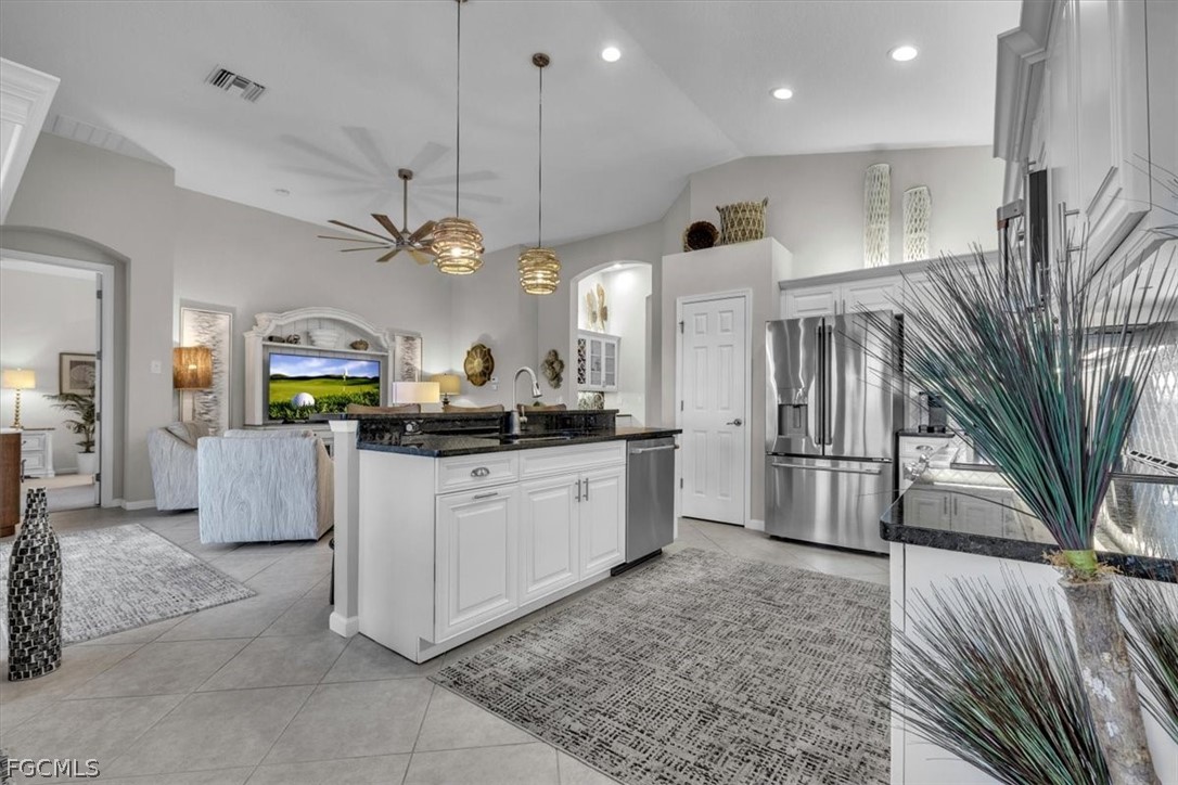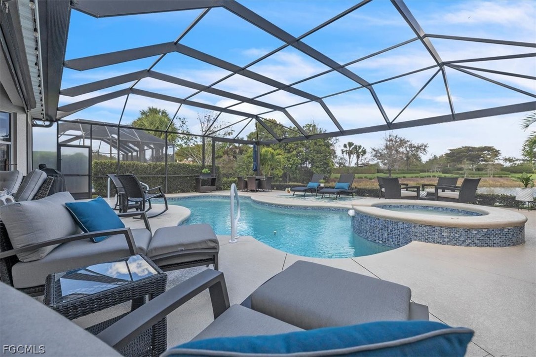 A meticulously maintained and upgraded home is now available for purchase in the highly sought-after Gated Verandah Community. This 3 Bedroom+Den, 3 Bath home offers nearly 2000 sq. ft. of living space with elegant and modern upgrades and decor. The extended Lanai area provides ample space for relaxation and sunbathing while overlooking a beautiful lake, adding to the splendor of this stunning home. Upon entering the home, you are greeted with a spacious open living area that showcases the numerous improvements made throughout. Features of the home include trey ceilings, diagonal tile in main living areas, a built-in wet bar with wine cooler, updated bathrooms with modern countertops, a fully updated kitchen with white cabinets, under cabinet lighting, and quartz countertops, newer appliances, bright and elegant light fixtures, updated fans throughout, plantation shutters and high end blinds throughout with attractive window coverings and drapes, fully refurbished and retiled pool/spa with new Pentaire system, new ductwork to enhance the air flow, fiber optic internet, and Storm Smart electric shutters. The homeowners have invested $120K in upgrades in the home. All bedrooms are generously sized and can accommodate a king-size bed. One of the bathrooms is en-suite, and the home features 3 full baths. The family room, kitchen, and breakfast area are all adjacent to each other, providing a great view of the lake behind the home. Additionally, the lanai area was extended by 10x40 and offers plenty of space for relaxation, sunbathing, or enjoying a good book while taking in the picturesque lake view through the 3 picture window screen. As part of the Verandah Community, residents have access to a wide range of amenities rarely found in one community. These amenities include 2 Championship Golf Courses designed by Jack Nicklaus and Bob Cupp, a state-of-the-art fitness center, pickleball, tennis, bocce, a dog park, playground, 9 miles of walking and biking paths, kayaks, multiple restaurants, and a social calendar that caters to everyone's needs. This home is truly a must-see. Secure your place in Paradise now.