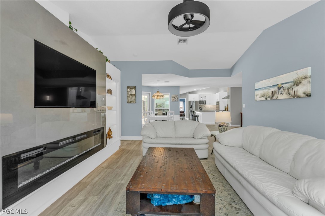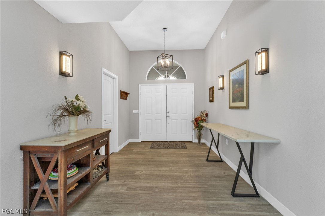 Completely remodeled and situated on a huge double lot, this exceptional property offers privacy, space, and a truly one-of-a-kind living experience. Located in a quiet, wooded neighborhood with no HOA, the beautifully landscaped grounds create a peaceful setting highlighted by a stunning mature tree that serves as the centerpiece of the property. The expansive property also features enclosed vegetable gardens, a new storage shed, updated pool pump and equipment, and upgraded electrical systems designed for easy, carefree living. Inside, the home showcases impressive upgrades and thoughtful design throughout. Vaulted ceilings and crown molding enhance the open feel of the living spaces, while the dramatic full-wall ceramic fireplace creates a striking focal point. The gourmet kitchen has been completely updated and offers the perfect space for cooking, entertaining, and gathering. One of the most exciting features of the home is the dedicated theater and media room, equipped with JBL full-range speakers and Polk powered subwoofers, creating an incredible cinematic experience right in your own home. Step outside to your private outdoor retreat where the oversized lanai and expansive pool area provide the perfect setting for entertaining guests, hosting family gatherings, or simply relaxing and enjoying Florida living. For added convenience and peace of mind, the home is also equipped with five exterior Ring security cameras. With too many upgrades to list, this beautifully remodeled property combines space, privacy, and luxury features rarely found together. From the moment you step inside, you will know this is the home you have been waiting for. Land, Site, and Tax Information