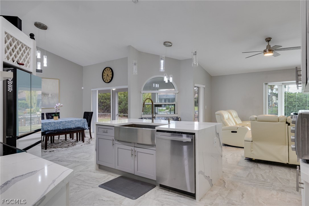 BEST VALUE GULF ACCESS IN SW CAPE – PRICED TO SELL! MAJOR SYSTEMS UPDATED – MOVE-IN READY WATERFRONT. Boater’s dream opportunity in one of Southwest Cape Coral’s most desirable waterfront areas. This beautifully updated Gulf access home offers the ideal blend of modern upgrades and Florida waterfront living, complete with a private dock and boat lift for quick access to open water and a freshly painted dock ready for your boat. Big-ticket improvements provide true peace of mind with NEW ROOF (2026), NEW EXTERIOR PAINT (2026), HURRICANE IMPACT WINDOWS (2023), NEW PLUMBING THROUGHOUT (2022), AND A/C REPLACED (2020) — giving buyers confidence that the major systems have already been completed. Irrigation system recently had updates! LOW flood insurance only $183/month!! Inside, the home features a bright, updated interior with modern finishes throughout. The spacious primary suite includes a walk-in closet and a beautifully designed bathroom featuring a standalone soaking tub, creating a relaxing private retreat. Step outside and enjoy the peaceful canal setting with plenty of space to relax or entertain. The property also offers room to add a future pool, allowing the next owner to create their own backyard oasis while enjoying the waterfront lifestyle. A rare bonus for this area - vacant lots on both sides provide additional privacy and a more open feel compared to neighboring homes. Located near Surfside Blvd and Veterans Pkwy, this home provides convenient access to shopping, dining, and some of Cape Coral’s best boating waters. Updated Gulf access homes with this level of improvements rarely come to market at this price point. Schedule your showing today.