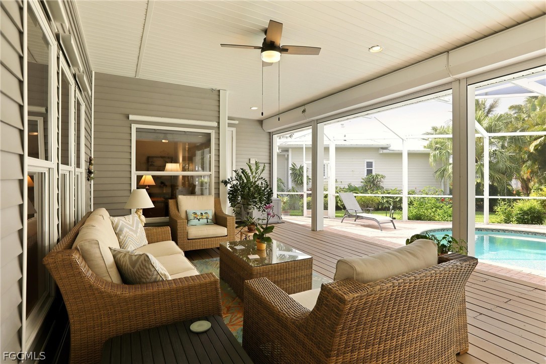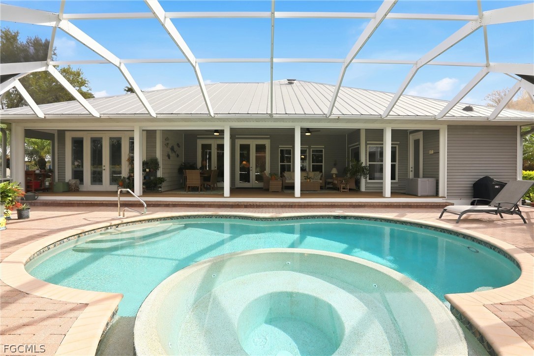 Beautifully maintained pool home in the highly desirable Caloosa Creek community, ideally located on a spacious corner lot with a circular driveway and classic side-loading garage. This residence reflects the relaxed, coastal character that Caloosa Creek is known for while offering numerous thoughtful upgrades and quality finishes throughout.