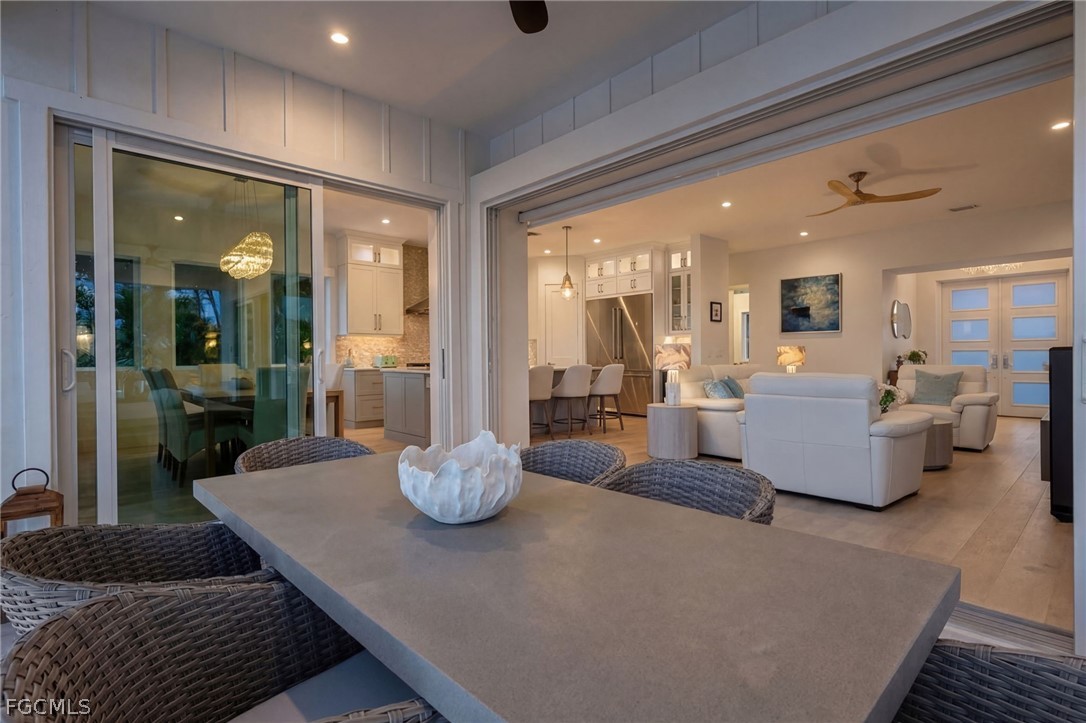 BRAND NEW CONSTRUCTION! This gorgeous new home was beautifully designed to capture the spectacular long views down the fairway. With eastern exposure, it also offers amazing sunrise views. Built using Insulated Concrete Form technology, this home has exemplary wind resistance, energy efficiency, fire resistance, and is wonderfully quiet. With all impact windows and doors and a metal roof and built to current codes, this is a home that is built to withstand and excel in Sanibel's coastal environment. Beautiful wood floors, high ceilings, solid core interior doors, plentiful windows, stunning custom bathrooms, a fabulous chef's kitchen, and a huge outdoor living space make this home elegant, comfortable, and inviting. Two en suite guest rooms and a top floor primary suite provide privacy and relaxing accommodations for all. Interior and exterior stairs connect the elevated living space with the pool area that will soon be completed and will include a heated pool and spa and an outdoor kitchen incorporated in`to the to-be screened area. The beach path is just down the street, offering quick access to the deeded beach access. The community is also perfectly located near many shops and restaurants along Sanibel's main street. With an ideal location, exemplary construction, splendid decor and perfectly chosen furnishings, 1272 Par View is ready to be your incredible new island home!