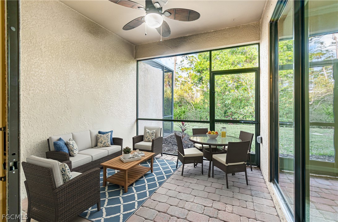 This beautiful attached villa is located in one of the area’s most desirable communities. The screened entry offers an amazing cross breeze! NEWER A/C (2023) & NEW hot water heater gives peace of mind! Offering 2 bedrooms PLUS a den, this home is designed for functionality and style. The preserve view offers serenity and privacy. The home also features fiber optic wiring already installed, you'll never have to worry about interruptions to your cable or Wi-Fi service, included in the HOA. You can also enjoy all that the community has to offer, including basketball and tennis courts, a community pool & spa, a clubhouse, fitness center, & tot lot. But perhaps the best part of this community is the social committee, which is always planning fun events for residents of all ages. With its prime location near shopping, I-75, & the airport, you'll have everything you need at your fingertips. Reflection Isles provides a lifestyle as exceptional as this home. Nestled in the environmentally-sensitive Six Mile Slough, you'll experience tucked-away privacy with modern conveniences just minutes away. Don’t miss this unique opportunity to own a villa that combines thoughtful upgrades with unbeatable storage solutions. Schedule your showing today and experience the best of Reflection Isles living!