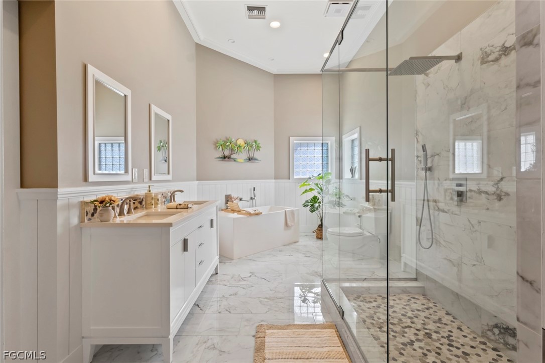 Inside, you will find a clean, modern feel with quality finishes throughout. Tall ceilings enhance the sense of space, while tasteful shiplap accent walls add character in all the right places. The kitchen stands out with generous cabinetry, quartz countertops, a tile backsplash, and stainless steel appliances. The primary bathroom is especially impressive, featuring a spacious walk in shower with multiple shower heads, a soaking tub, and a well designed layout.