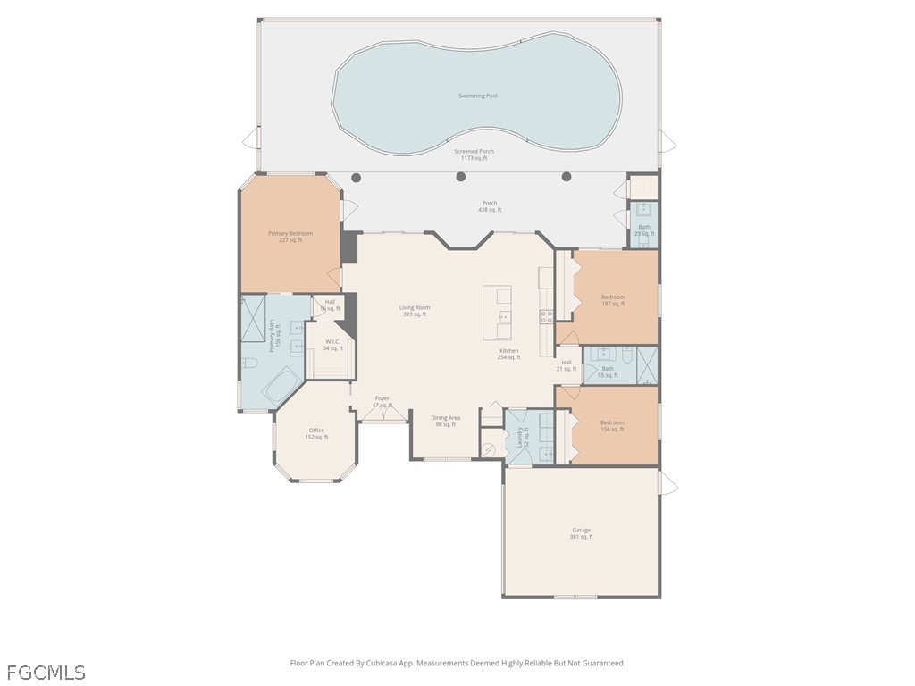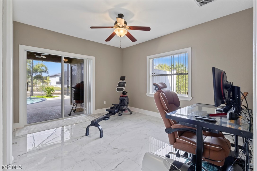 Additional features include a generous pantry, indoor laundry with a sink, two comfortable guest bedrooms, and a bright, functional office space. Large format tile flooring runs throughout the home, creating a cohesive and easy to maintain interior.