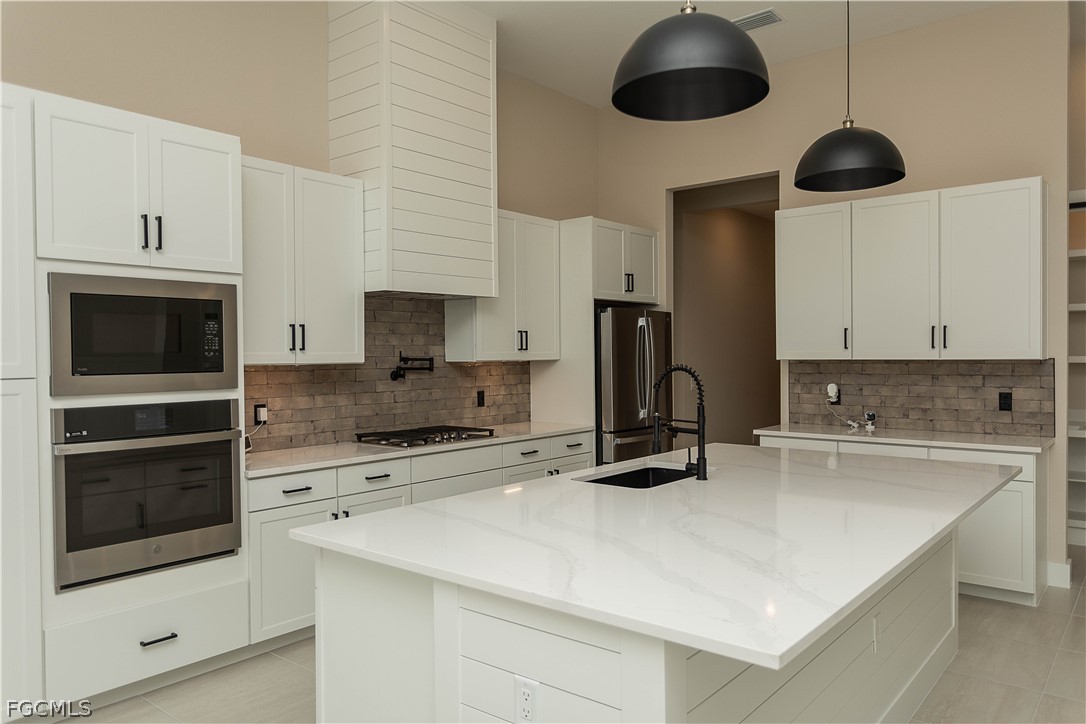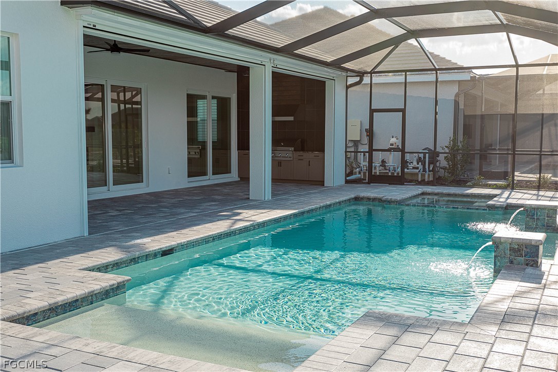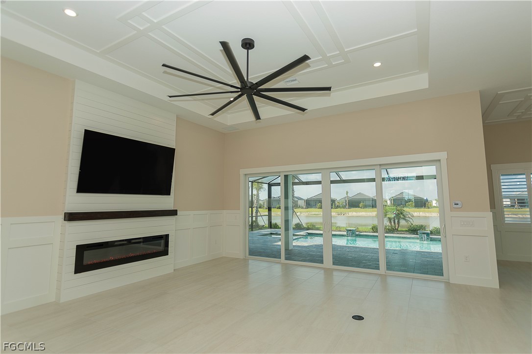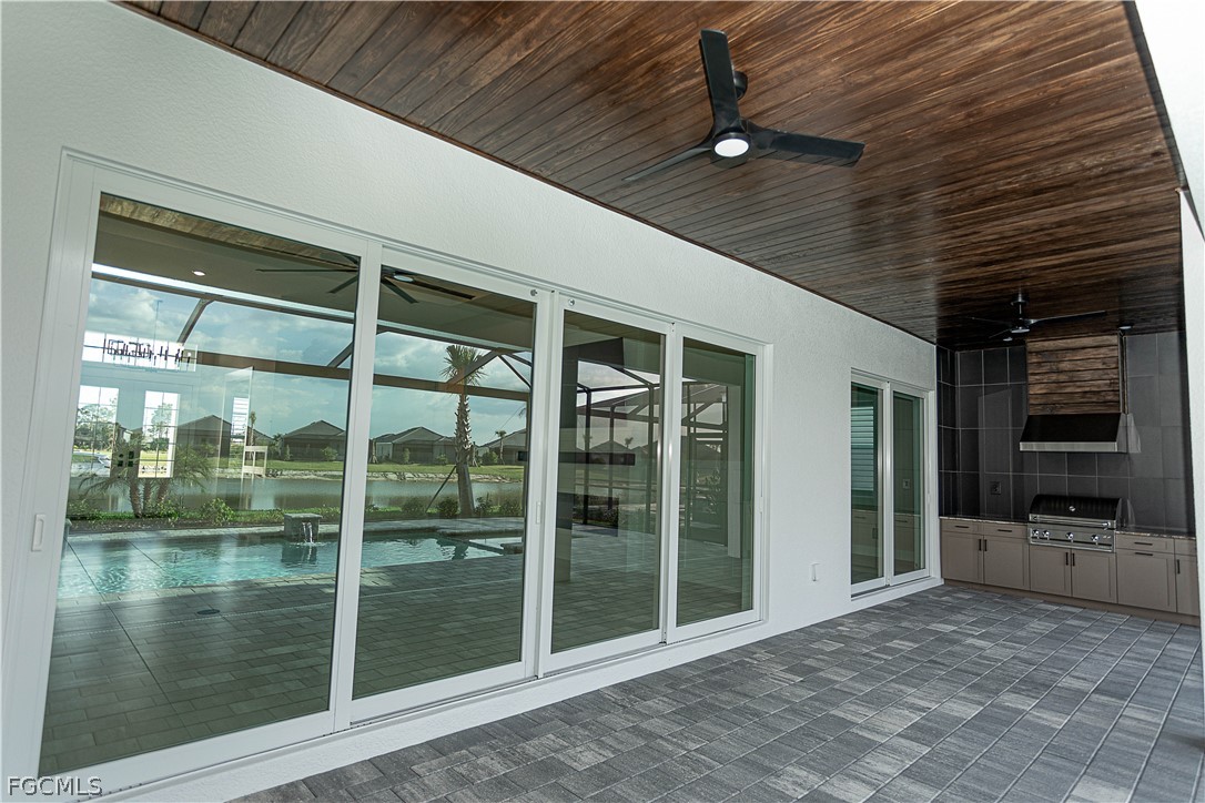 Welcome to this beautifully upgraded Lakeside Estate home in Webb’s Reserve at Babcock Ranch, deeded with GOLF. Designed with modern style and everyday functionality in mind, this move-in ready home offers open living spaces, high ceilings, and extensive custom upgrades throughout. Absolutely no expense spared from fixtures to wainscoting, this home is a MUST SEE! Curb appeal shines with ALL EXTERIOR upgraded coach lighting, a front porch chandelier, tongue-and-groove porch ceiling, sealed paver driveway, and a widened driveway extension for easier parking and protection from hard water. Inside, the home features modern decorative baseboards, updated door casings, and custom wainscoting in the entry, living room, and kitchen. Plantation shutters are installed on every window, and custom decorative ceilings enhance the breakfast nook, living room, and primary bedroom. All faucets, shower fixtures, door hardware, and hinges have been upgraded to matte black for a cohesive modern finish. The chef’s kitchen is the heart of the home, featuring an oversized quartz island with integrated sink, shaker cabinetry, stainless steel appliances, larger upgraded refrigerator, built-in wall oven and microwave, designer backsplash, and custom pot filler. The custom pantry includes quartz counters, designer lighting, added electrical outlets, custom shelving, and stylish bi-fold barn doors. Bathrooms showcase tile installed to the ceiling in all three showers, quartz countertops, modern vanities, and upgraded fixtures. The primary suite offers two custom closets and a custom blind over the sliding doors. Outdoor living is exceptional with an upgraded covered lanai featuring tongue-and-groove ceiling with insulation, ceiling fans, electrical for TV, and a fully built outdoor kitchen with high-end lifetime grill. The backyard also features a saltwater pool and peaceful water views. Additional upgrades include epoxy garage flooring, attic pull-down stairs with added insulation and plywood storage, expanded laundry room with pocket door and additional freezer/refrigerator, gutters added along the sides of the home, and professionally installed lighting and fans throughout. Located in Babcock Ranch — America’s first solar-powered town — residents enjoy miles of trails, lakes, parks, shopping, dining, and vibrant community events. Check our open house schedule every other week!